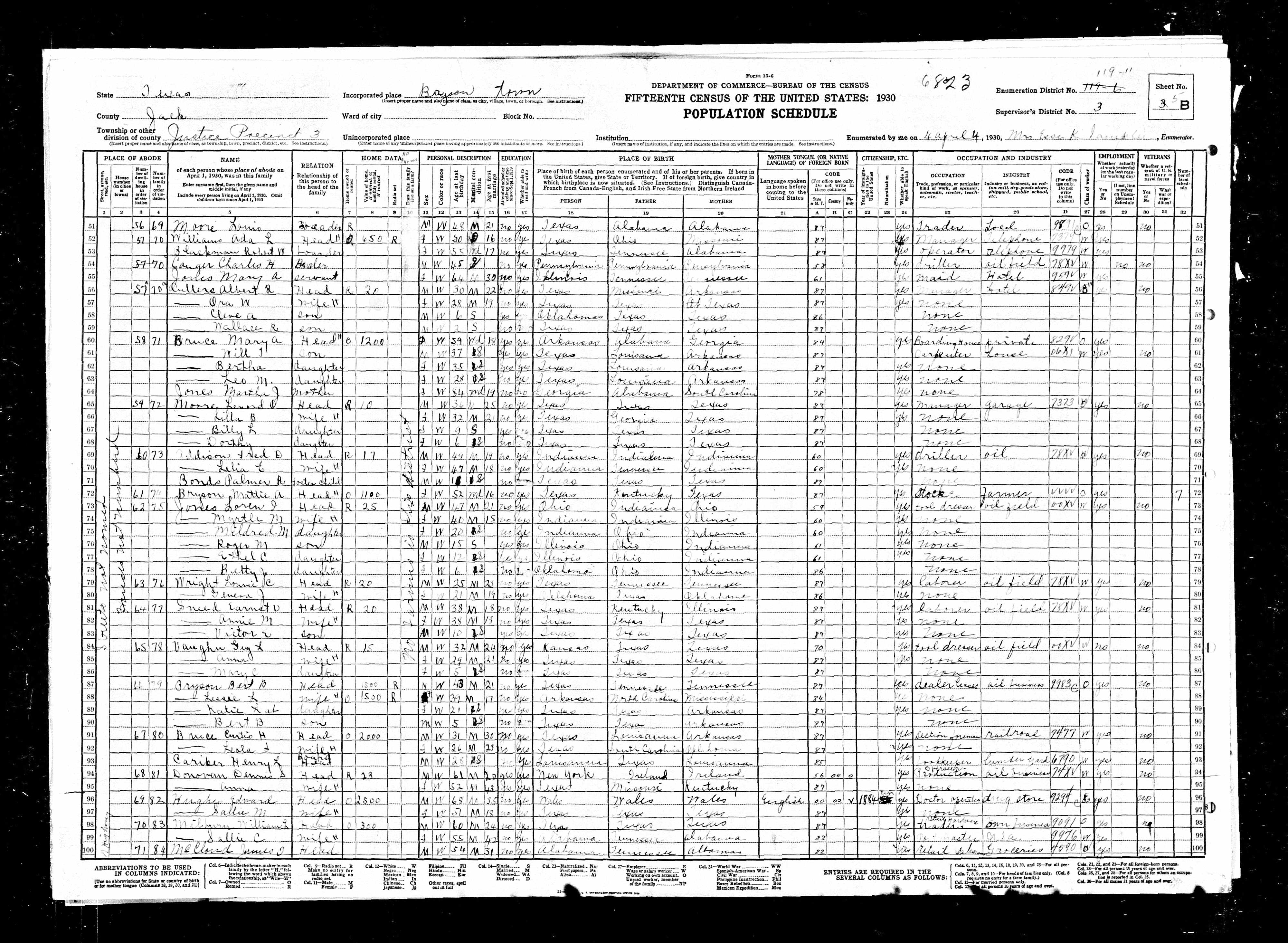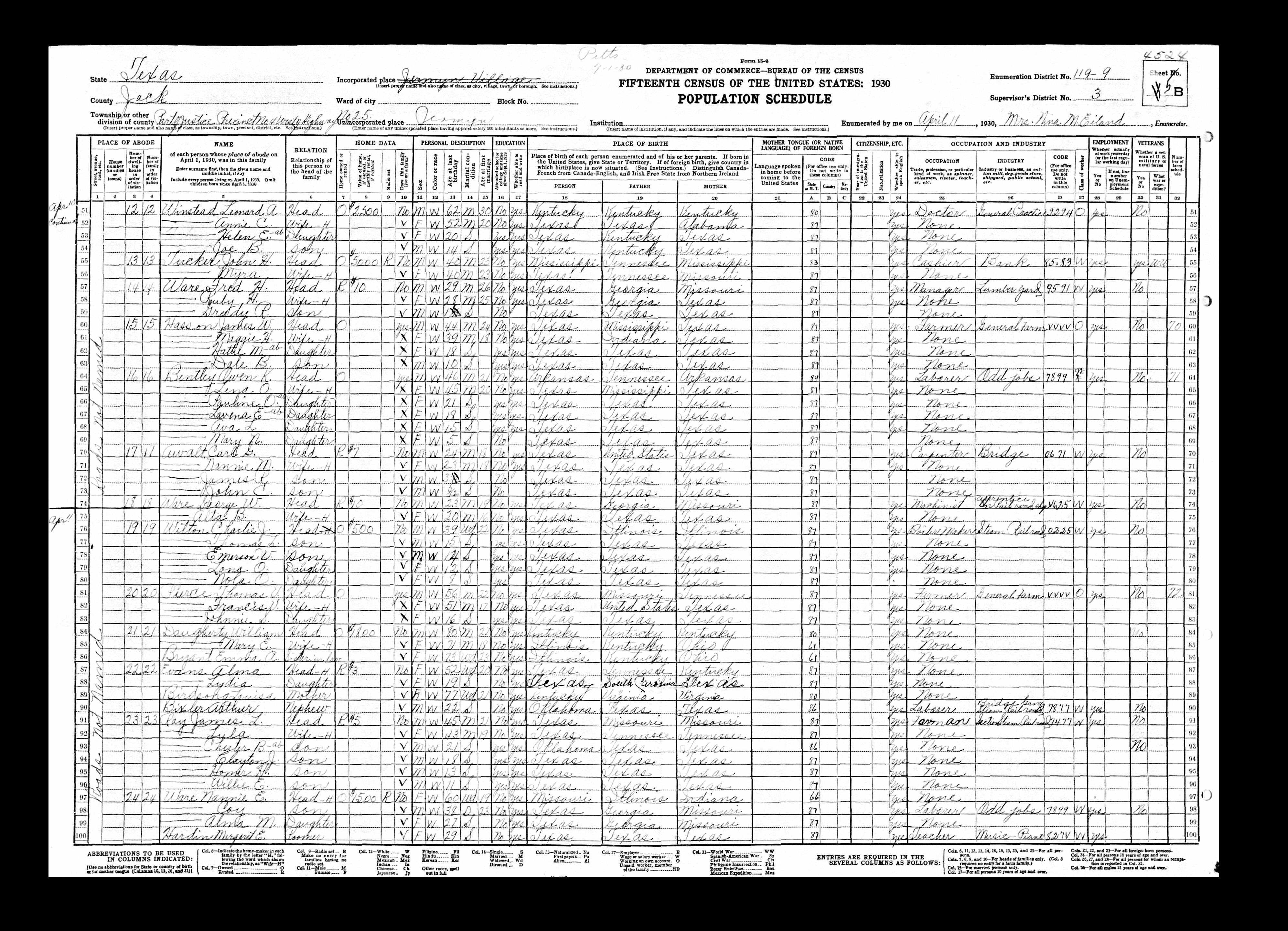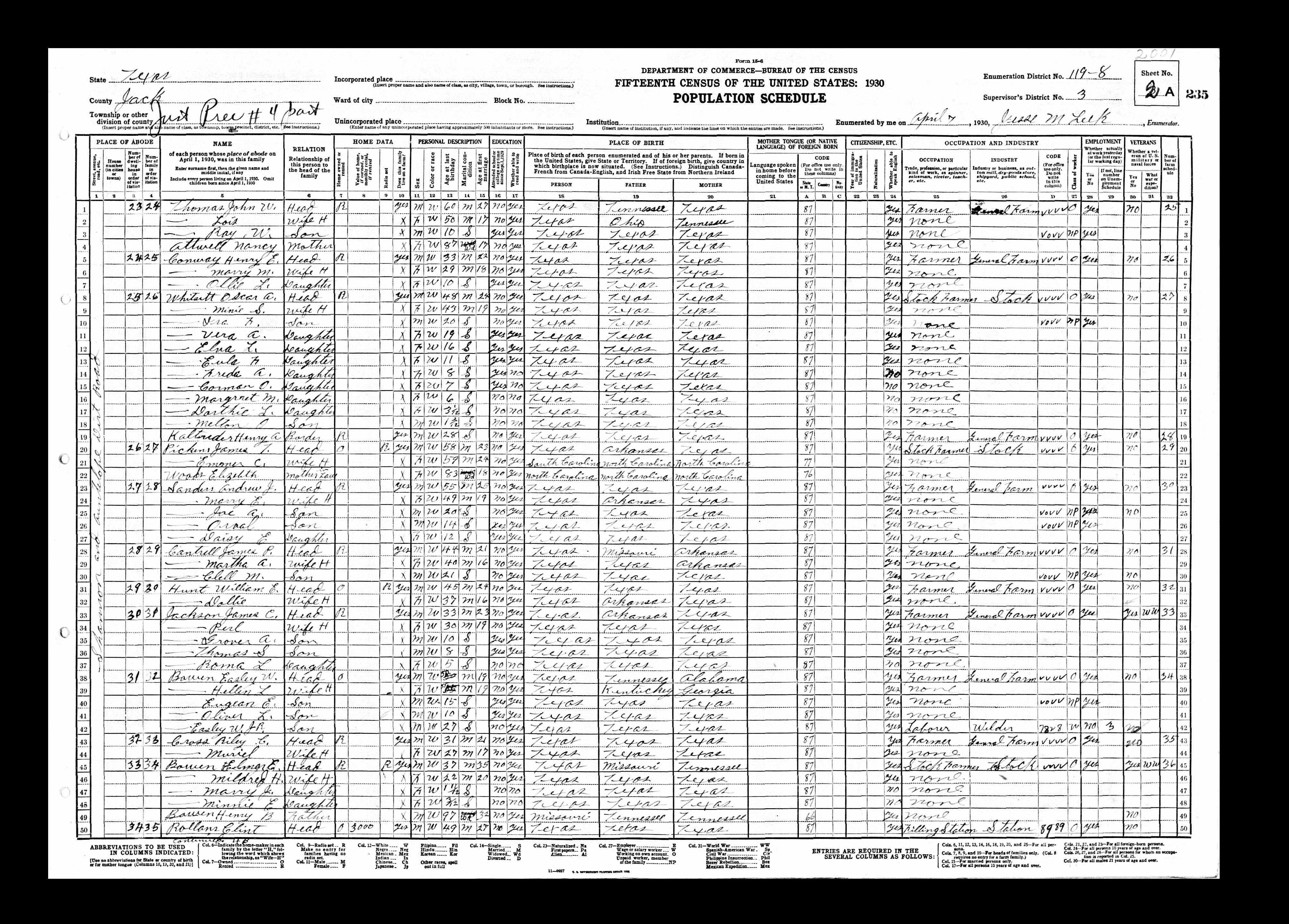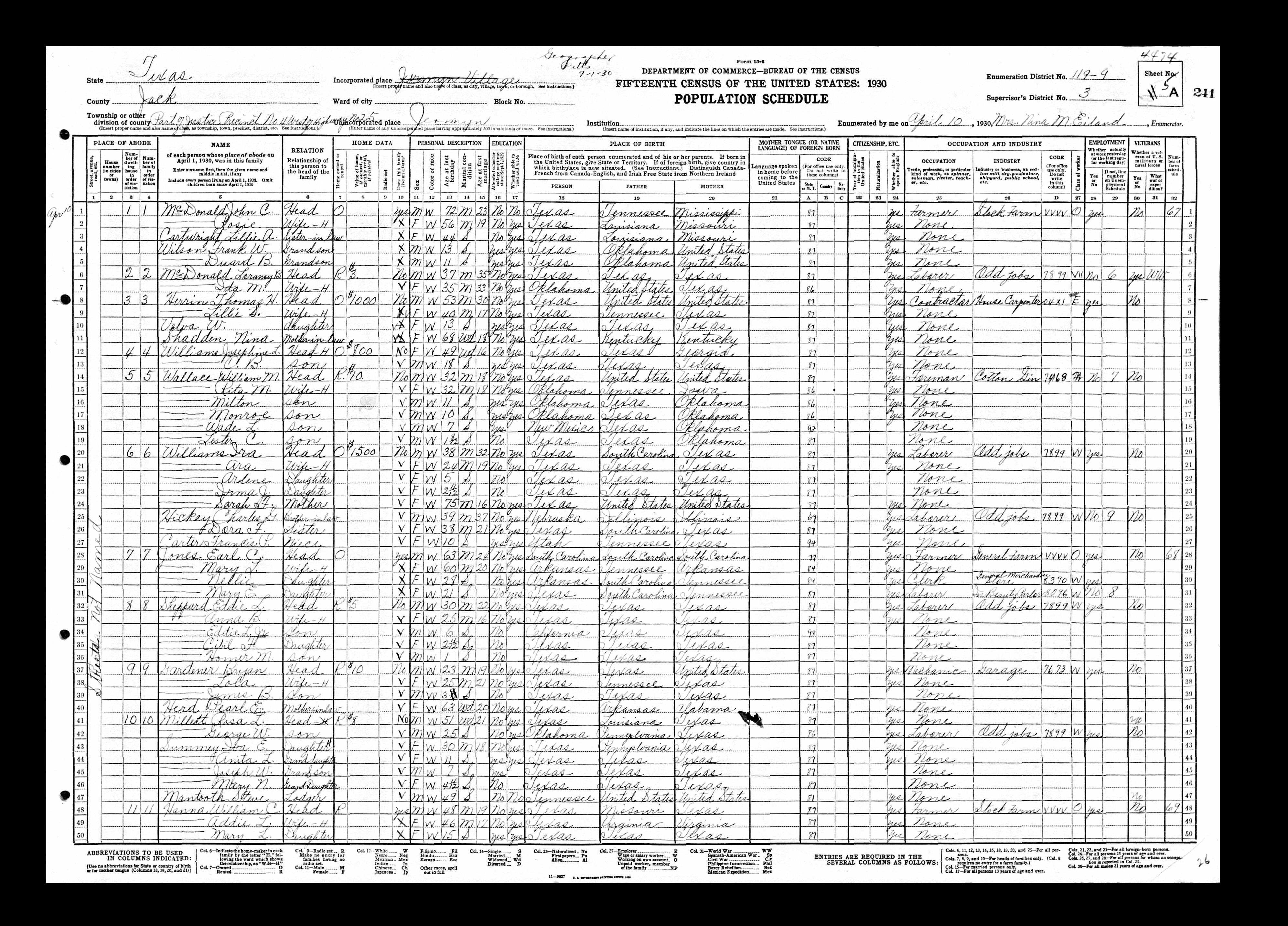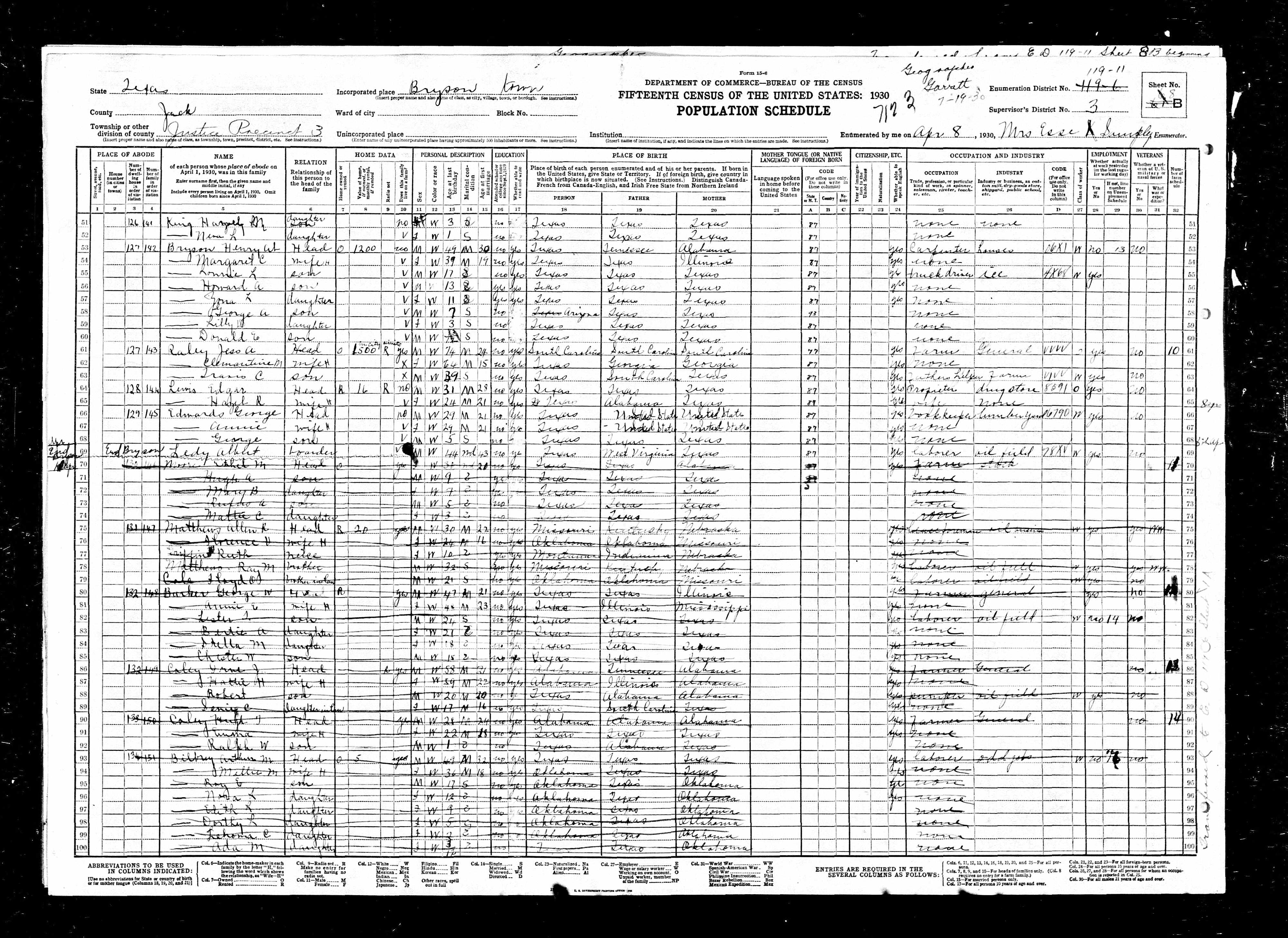 | Links to Large Images of Handwritten 1930 Census Pages | |||||||||||||||||||||