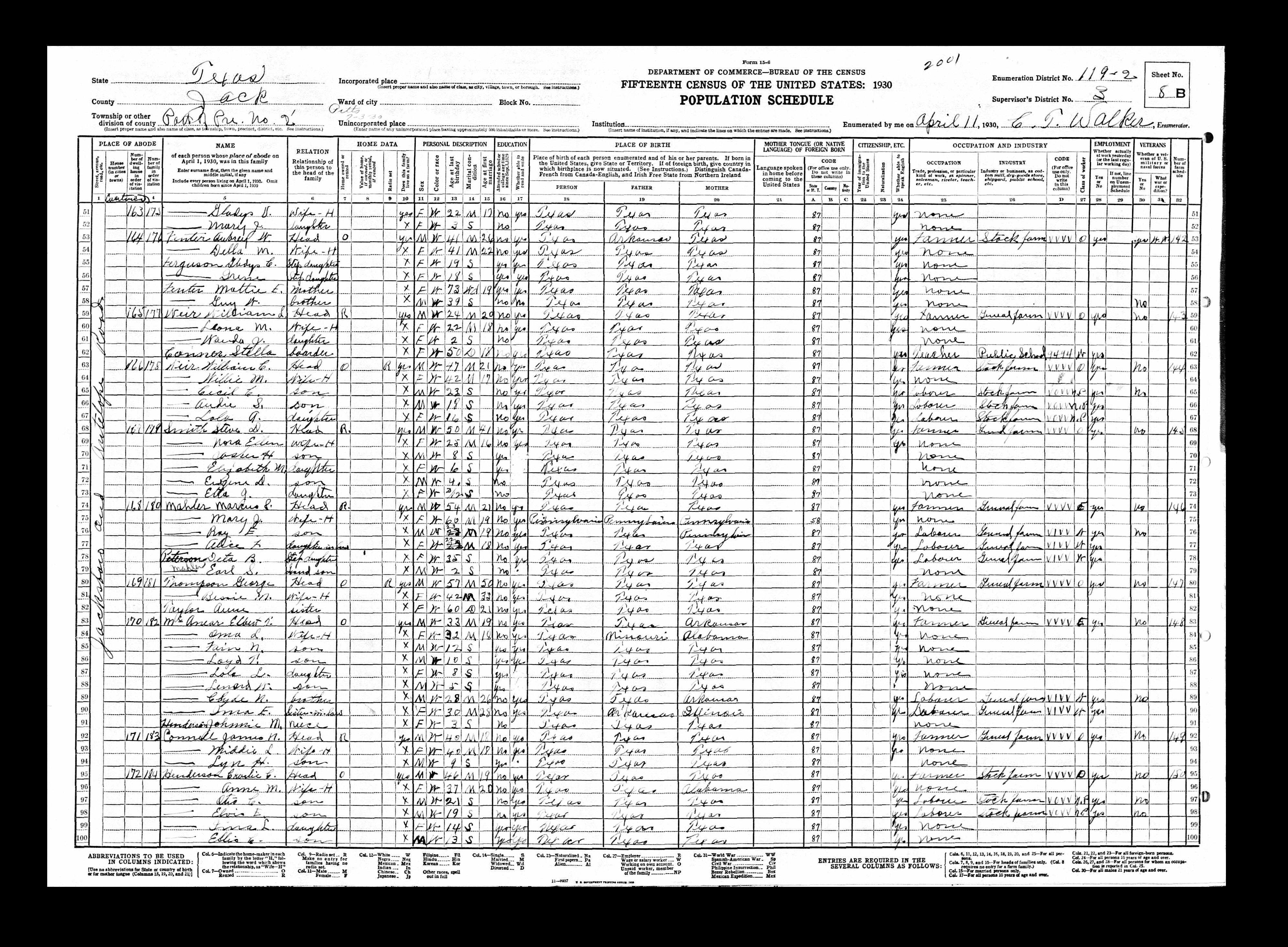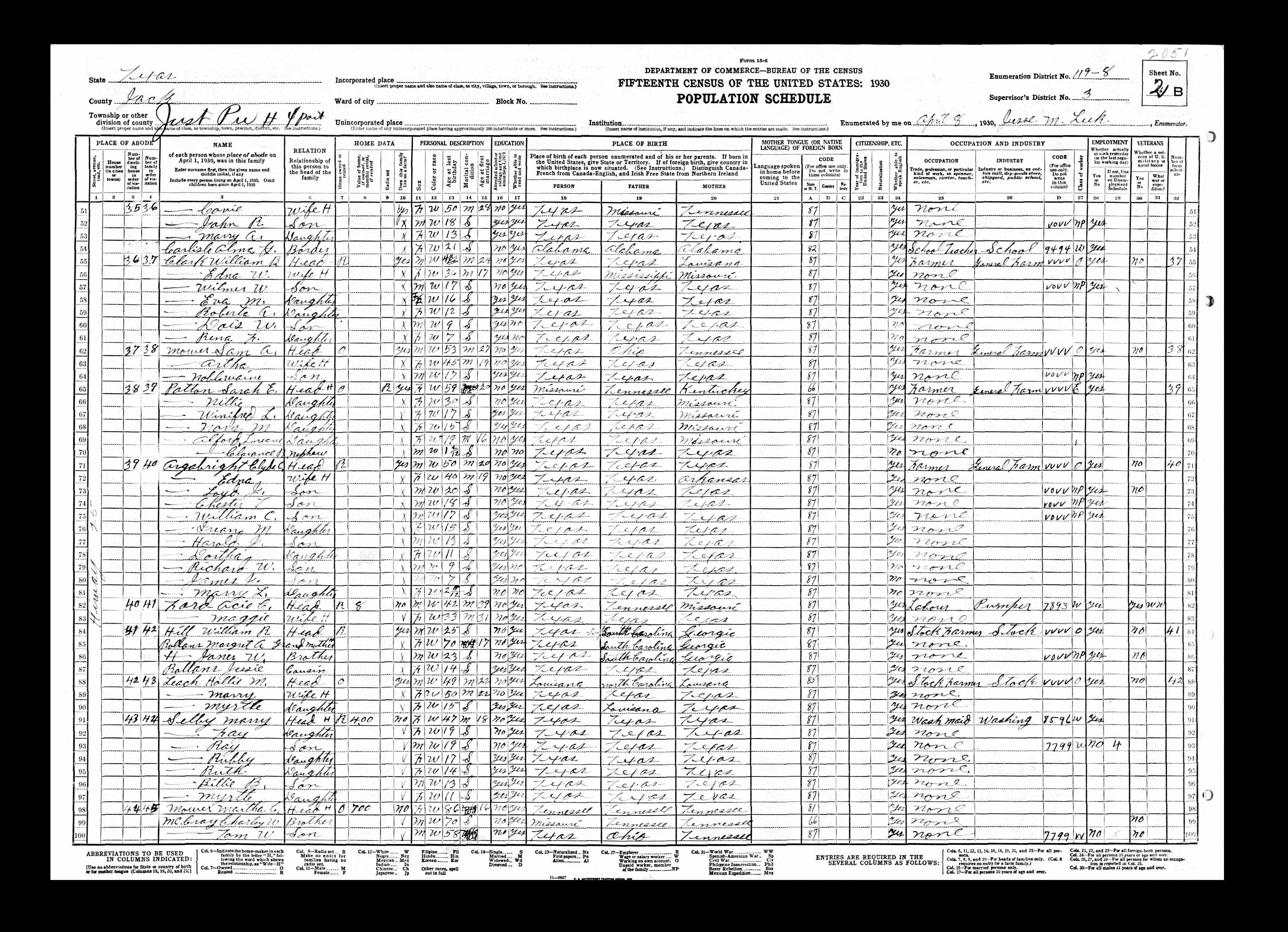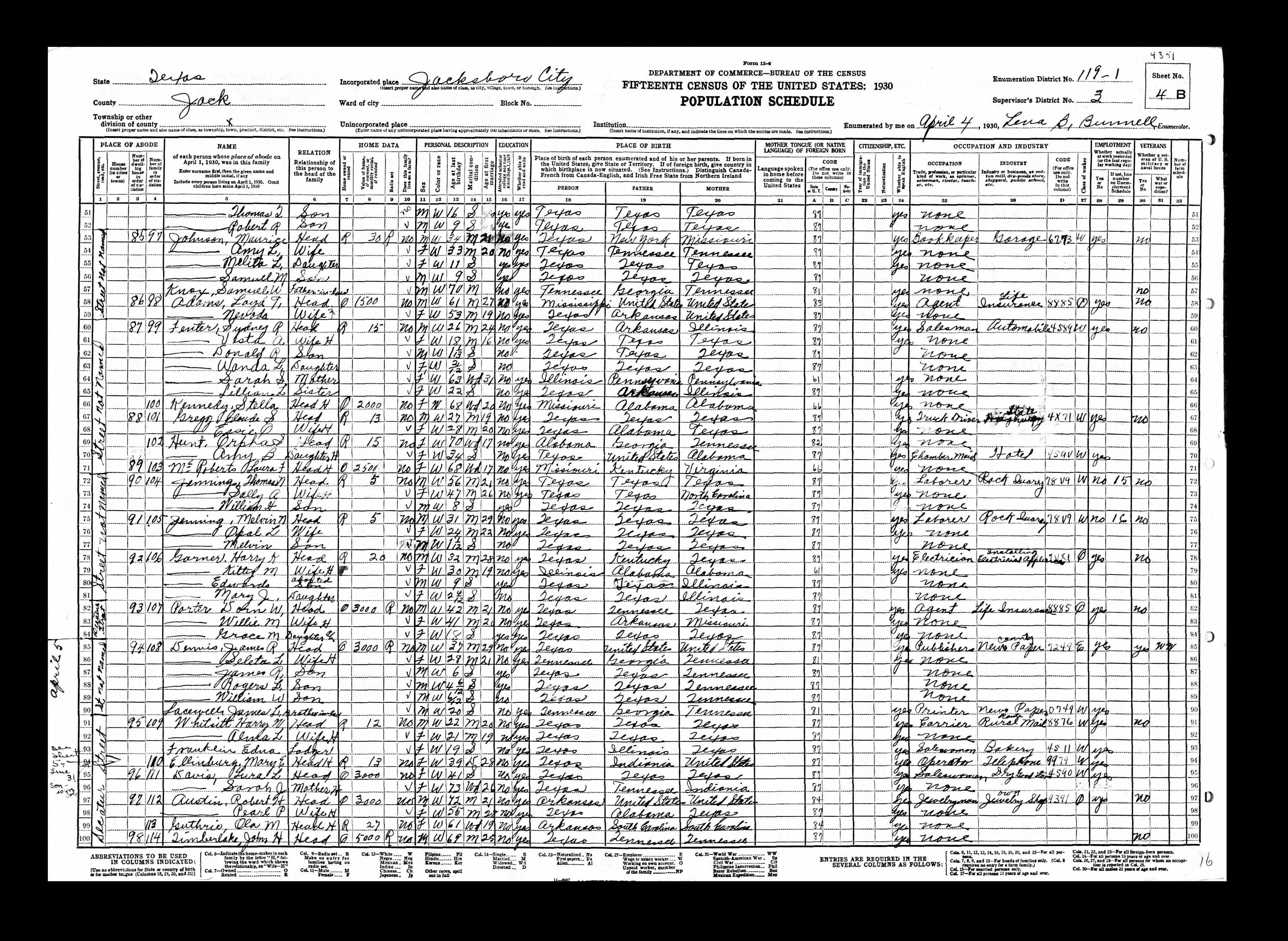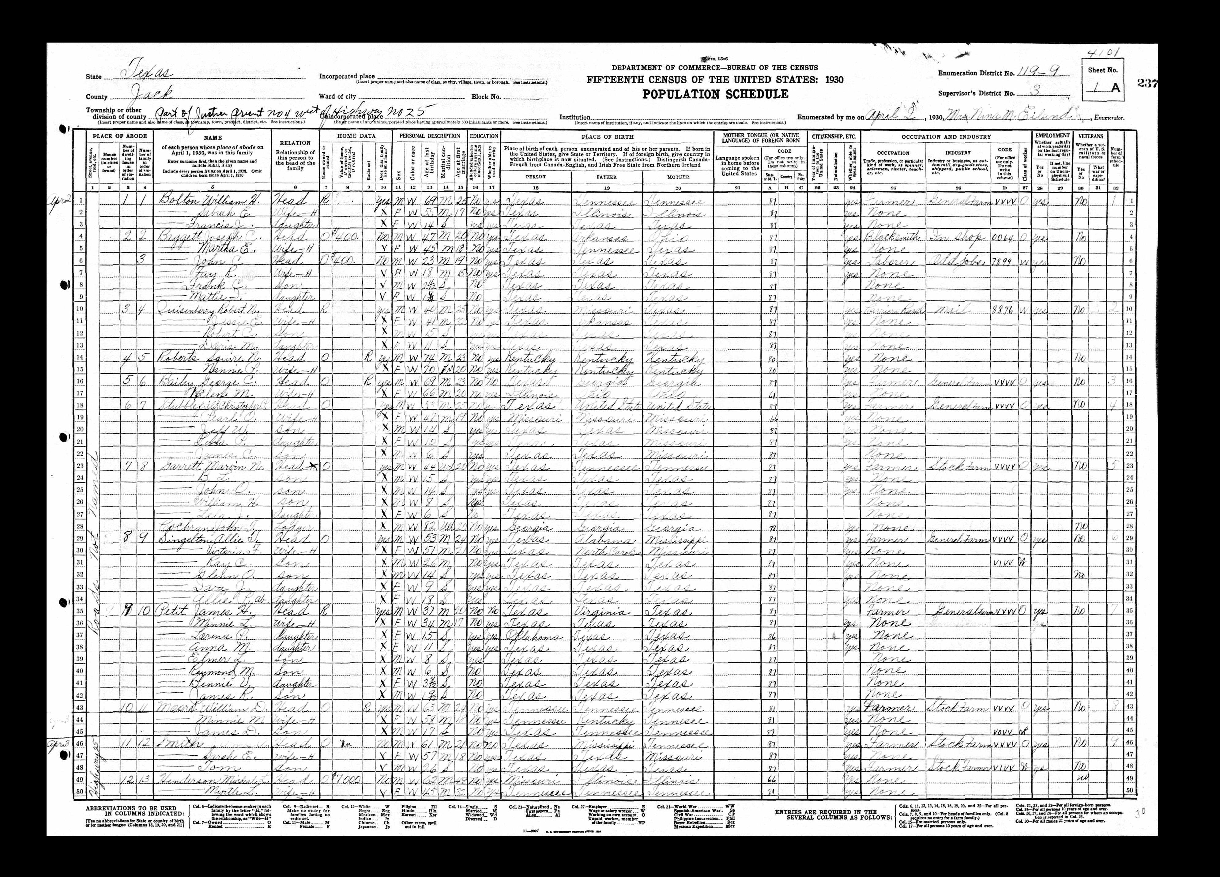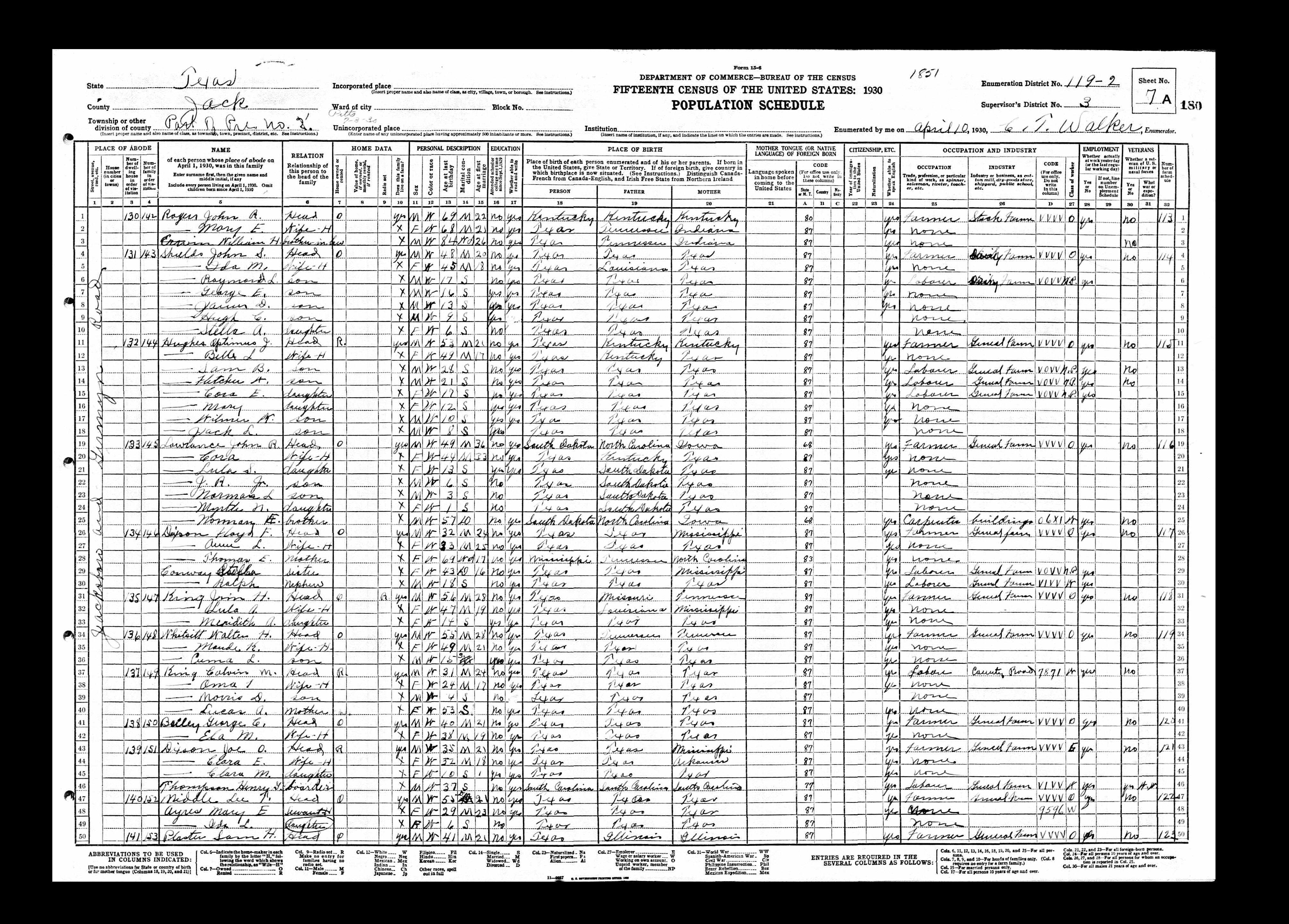 | Links to Large Images of Handwritten 1930 Census Pages | |||||||||||||||||||||