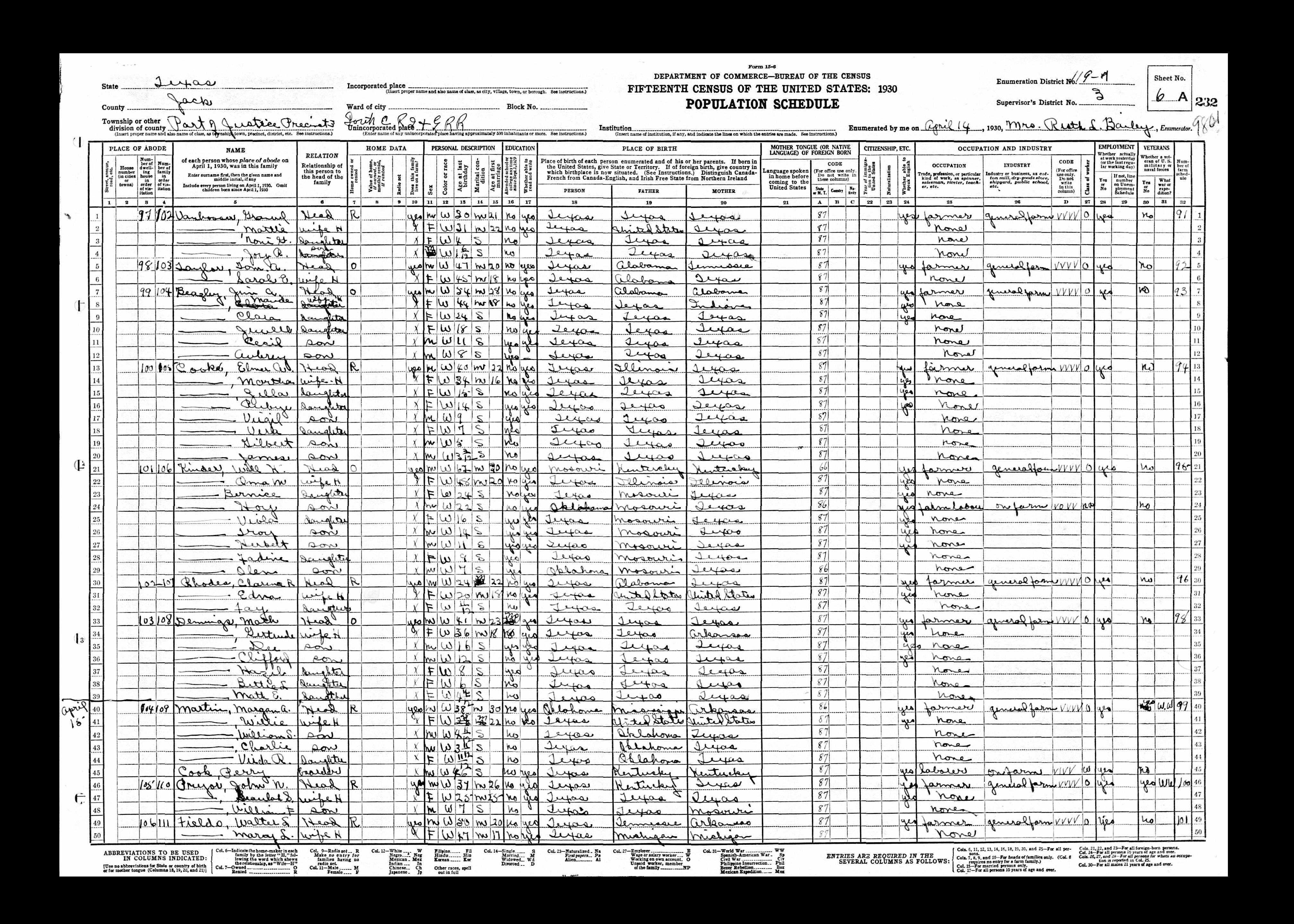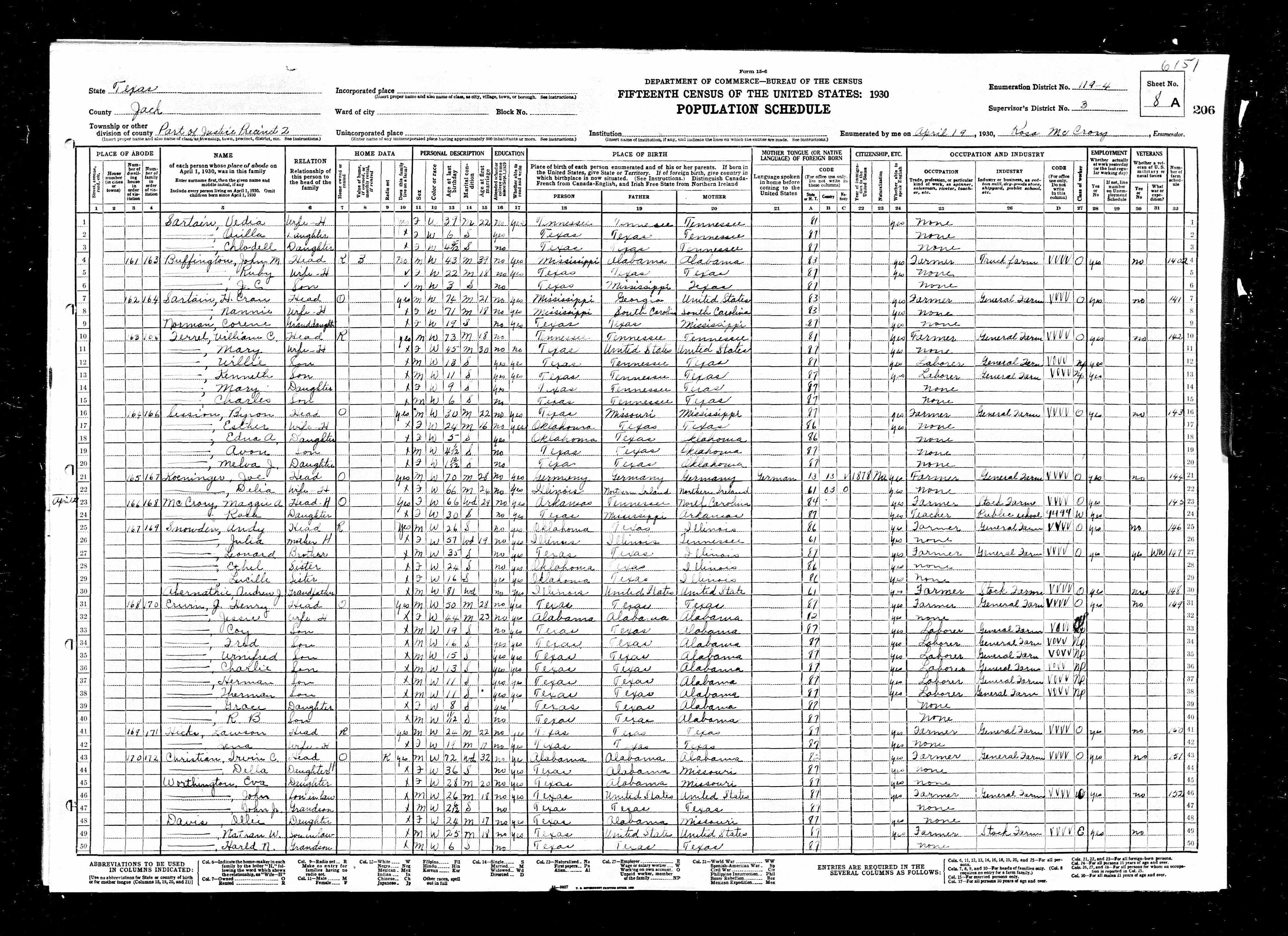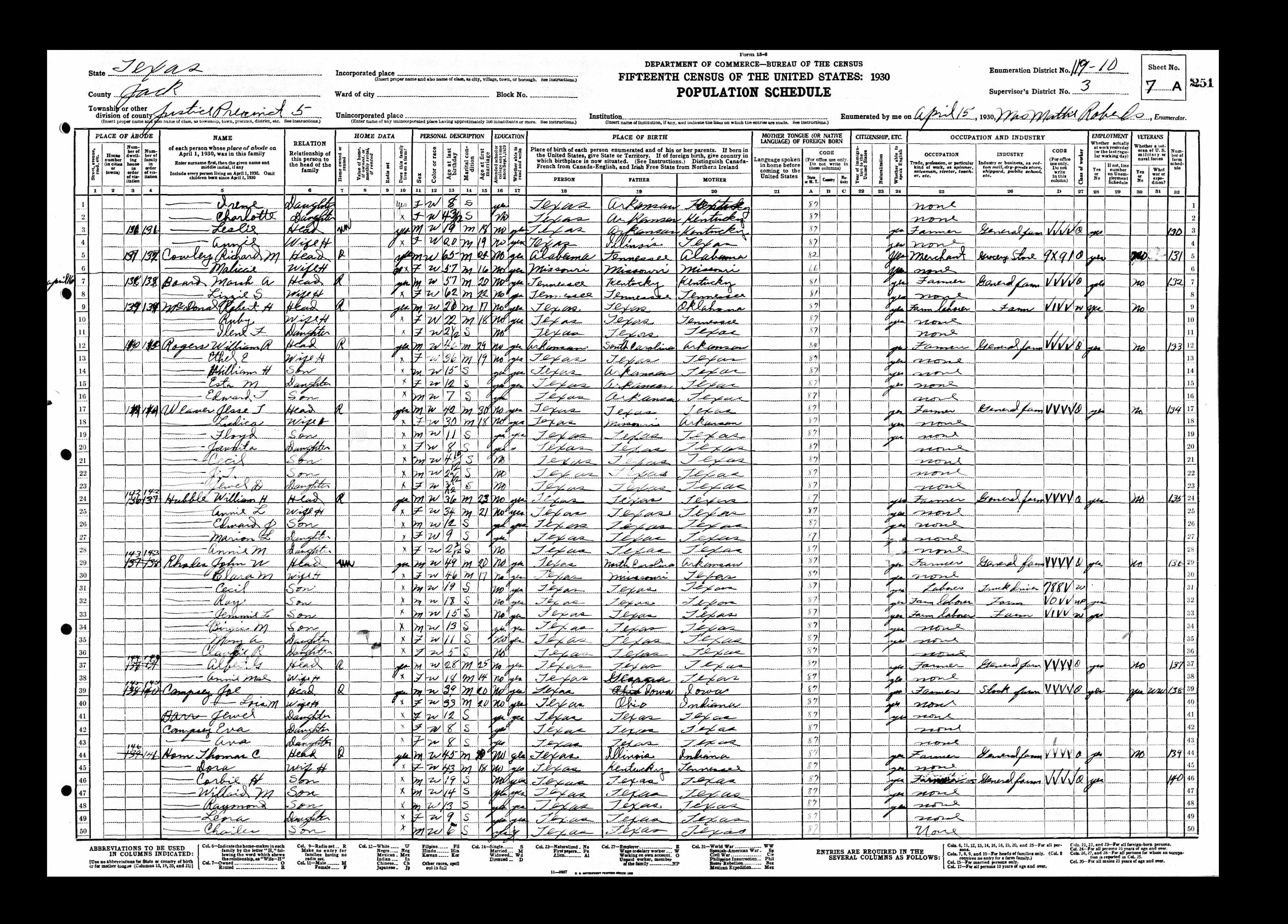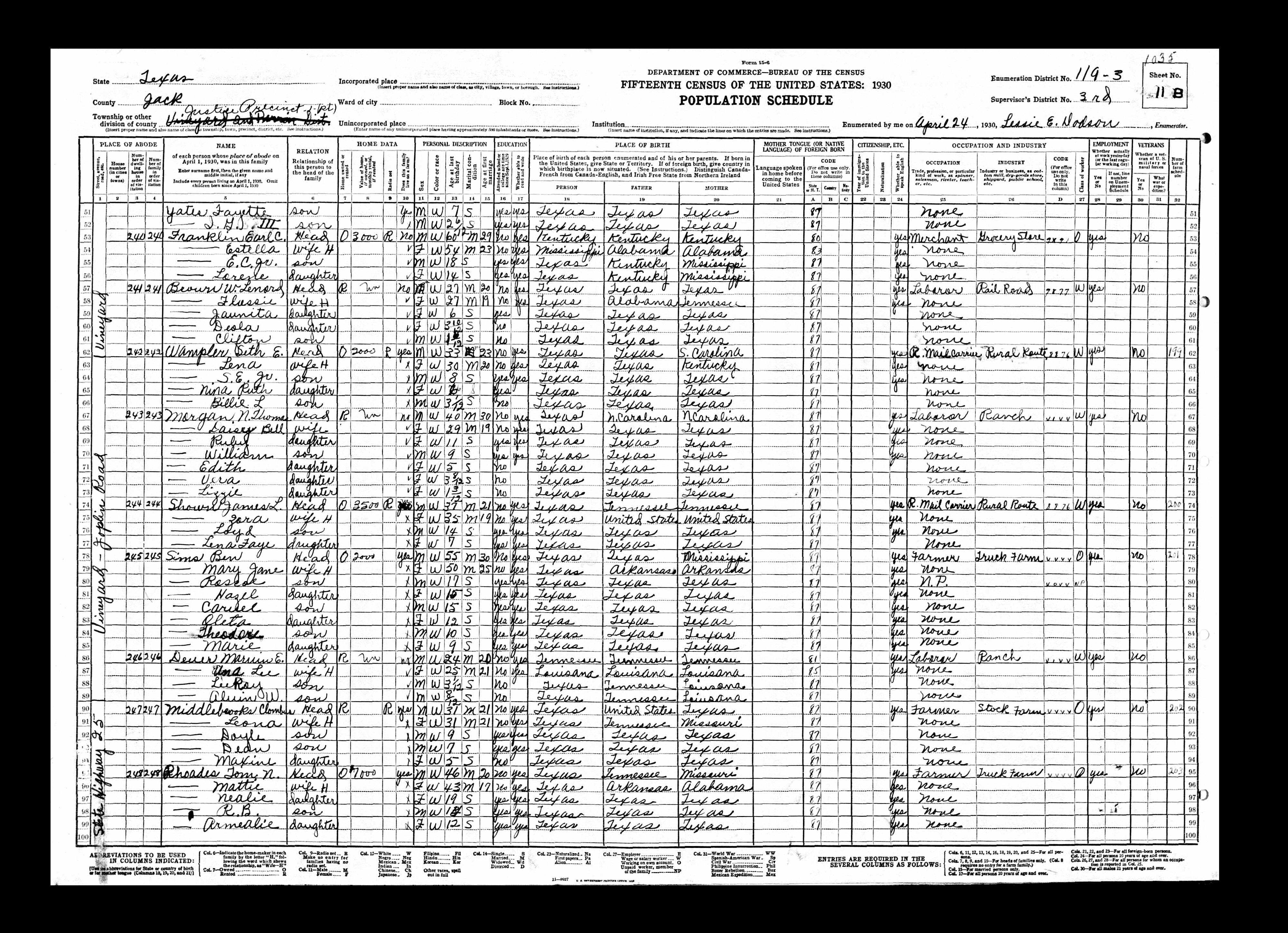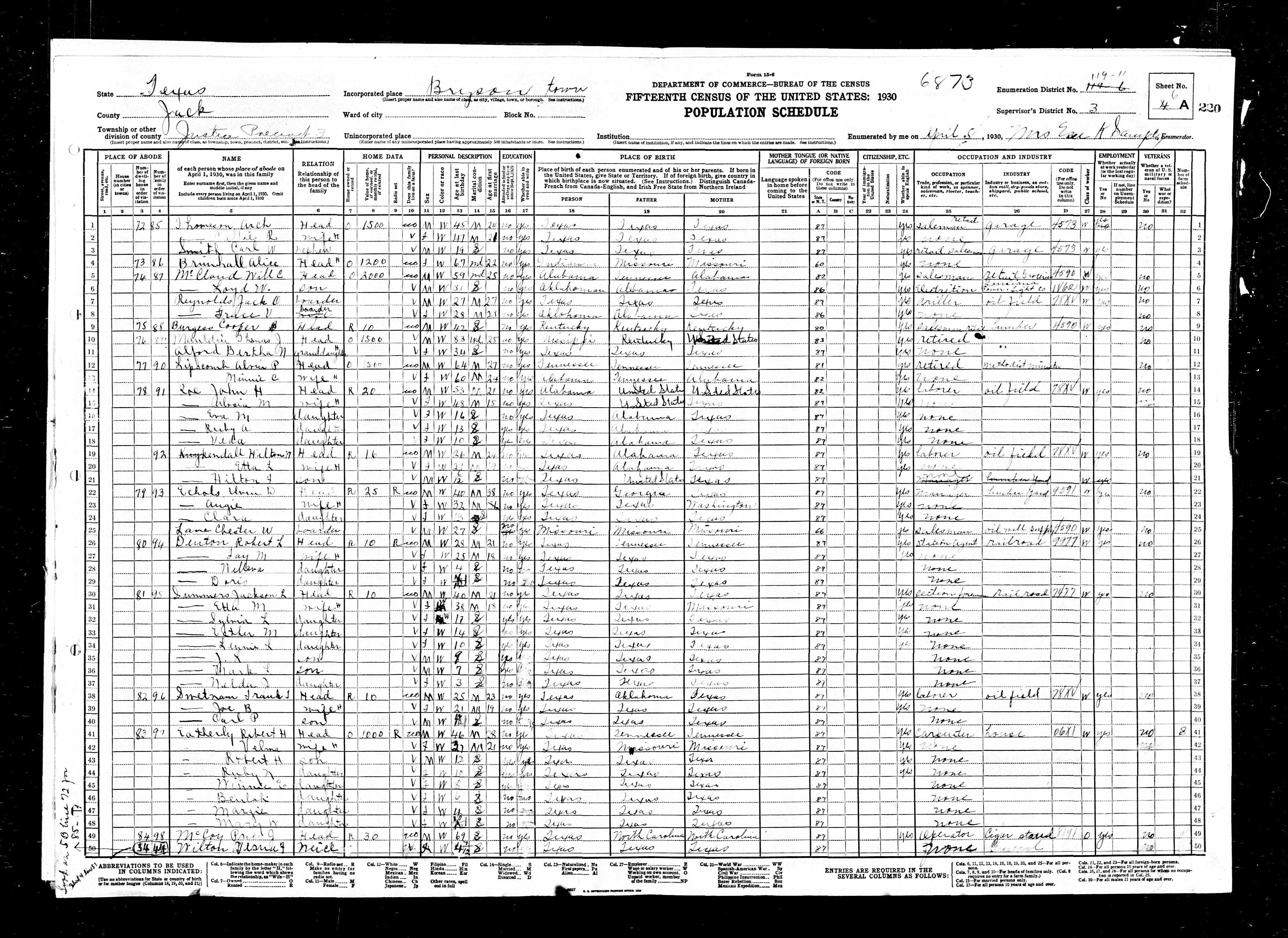 | Links to Large Images of Handwritten 1930 Census Pages | |||||||||||||||||||||