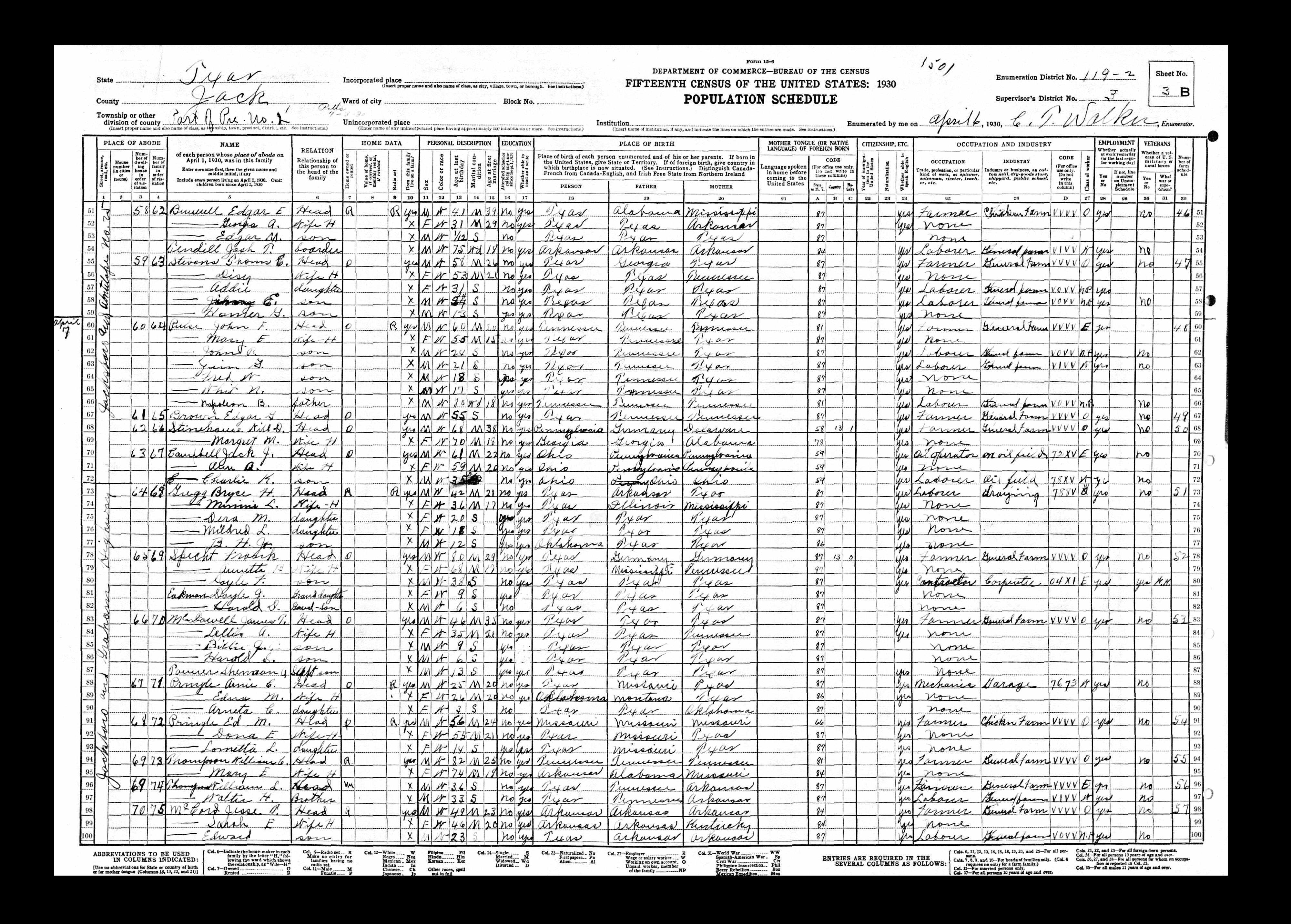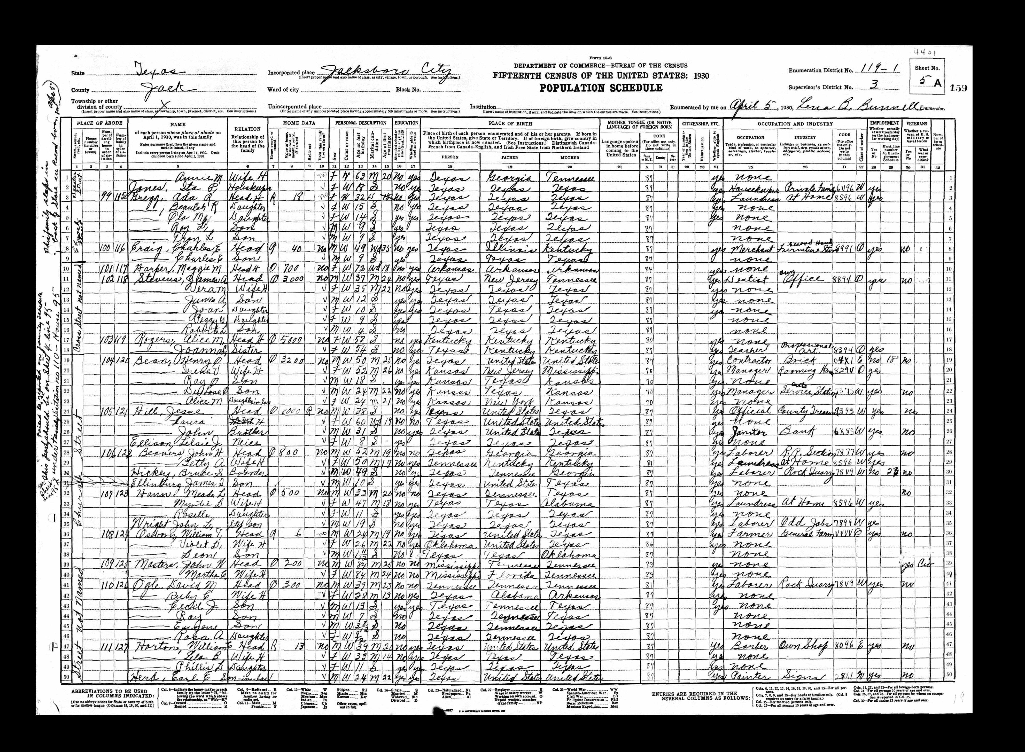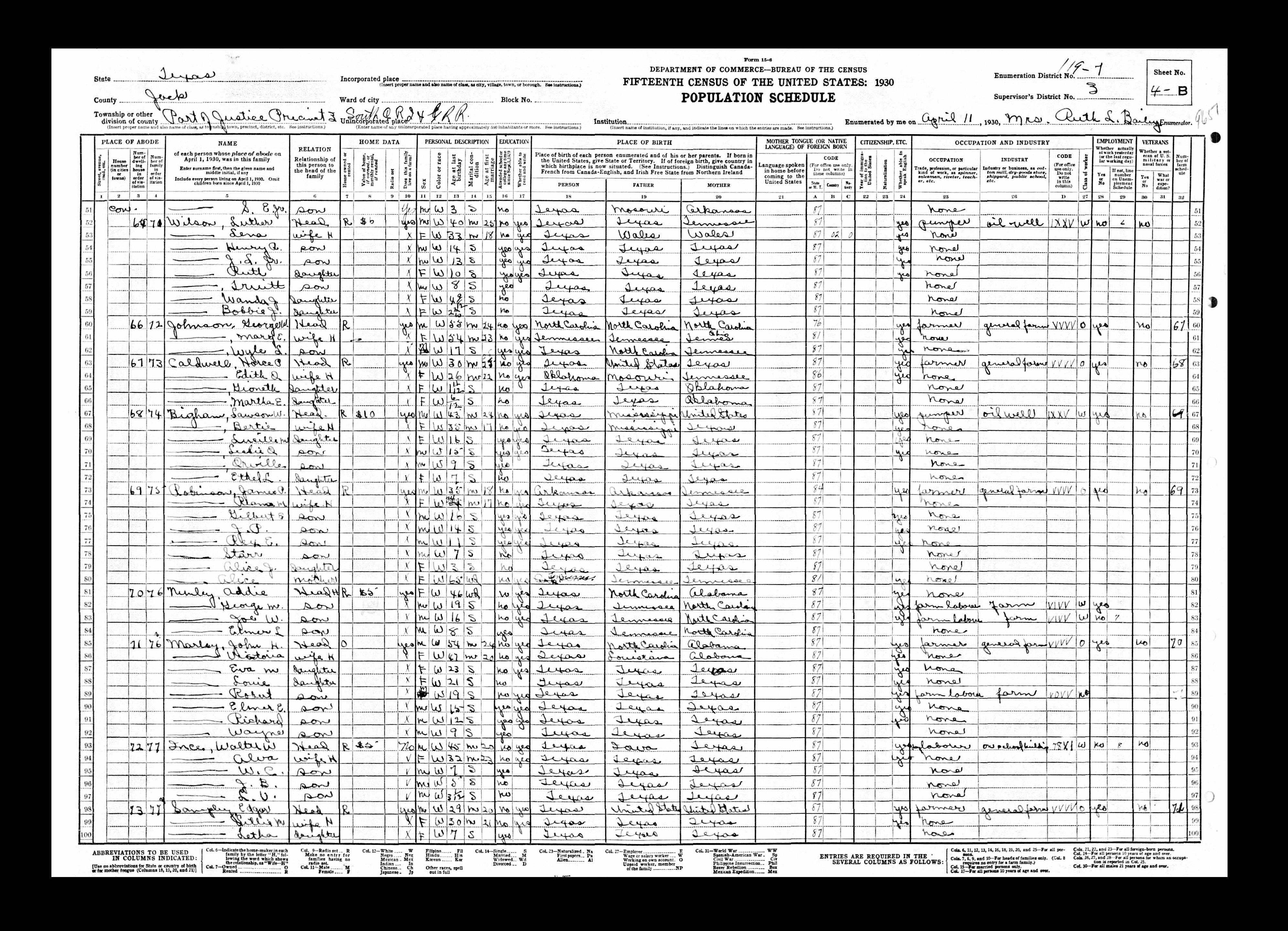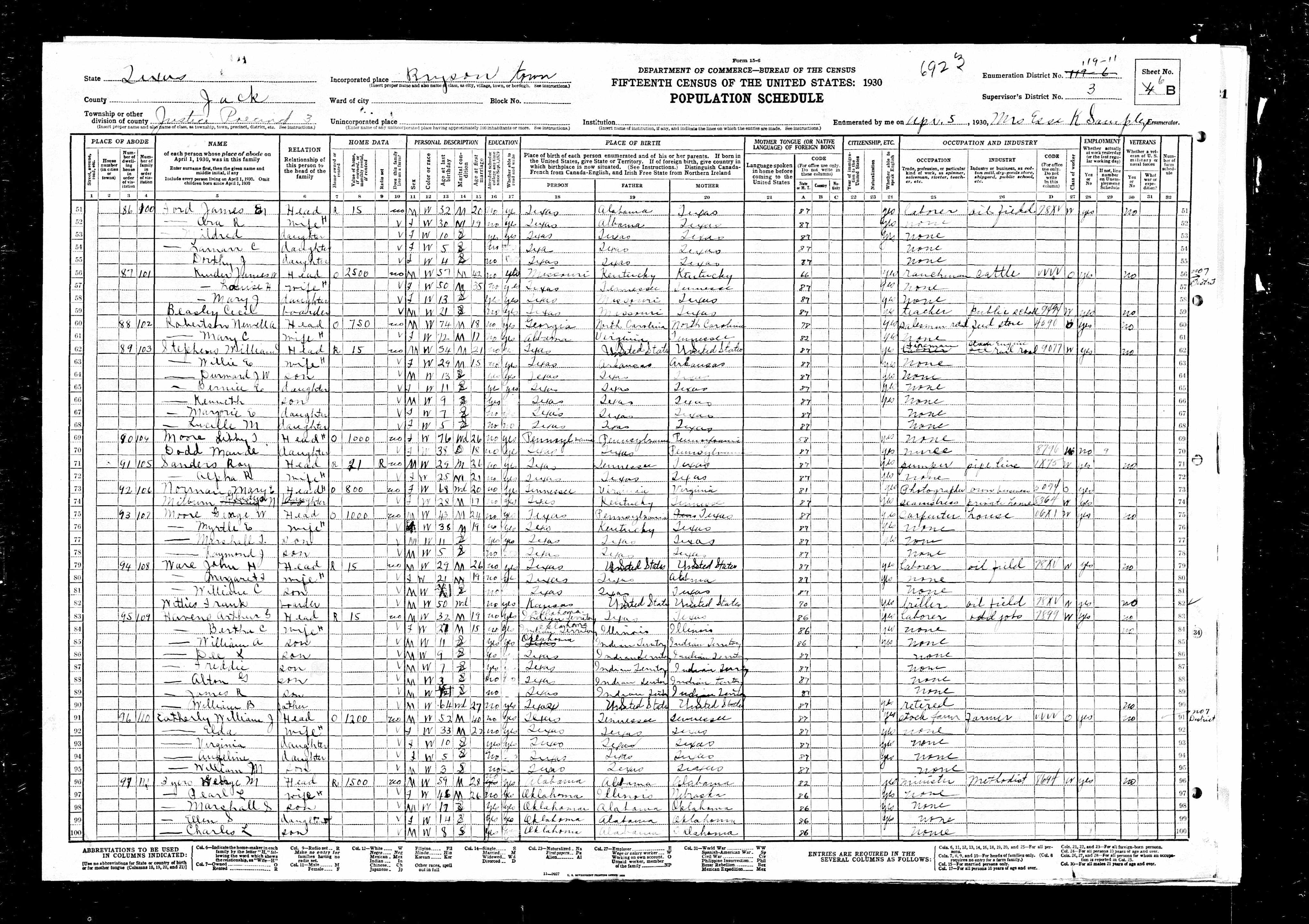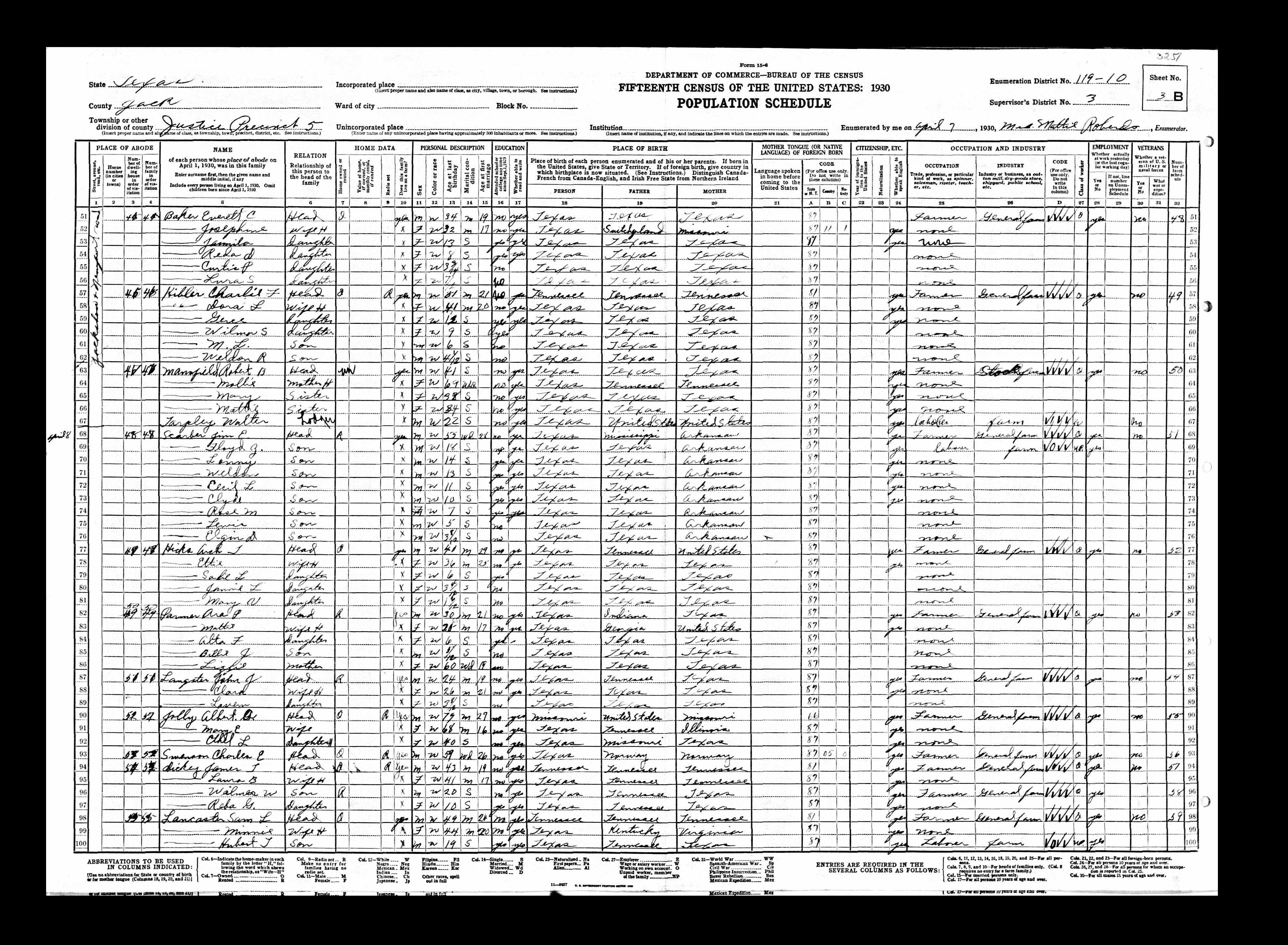 | Links to Large Images of Handwritten 1930 Census Pages | |||||||||||||||||||||