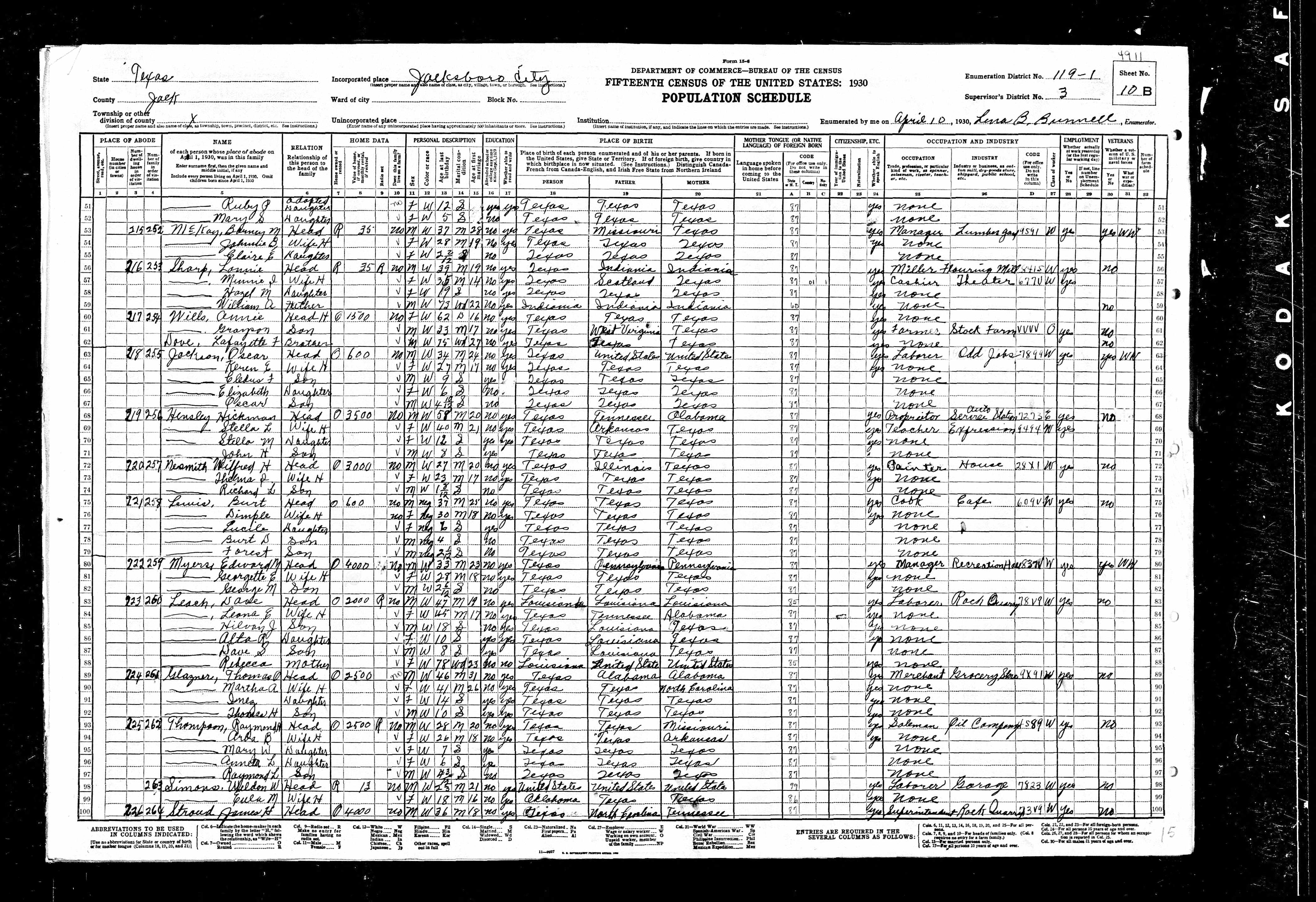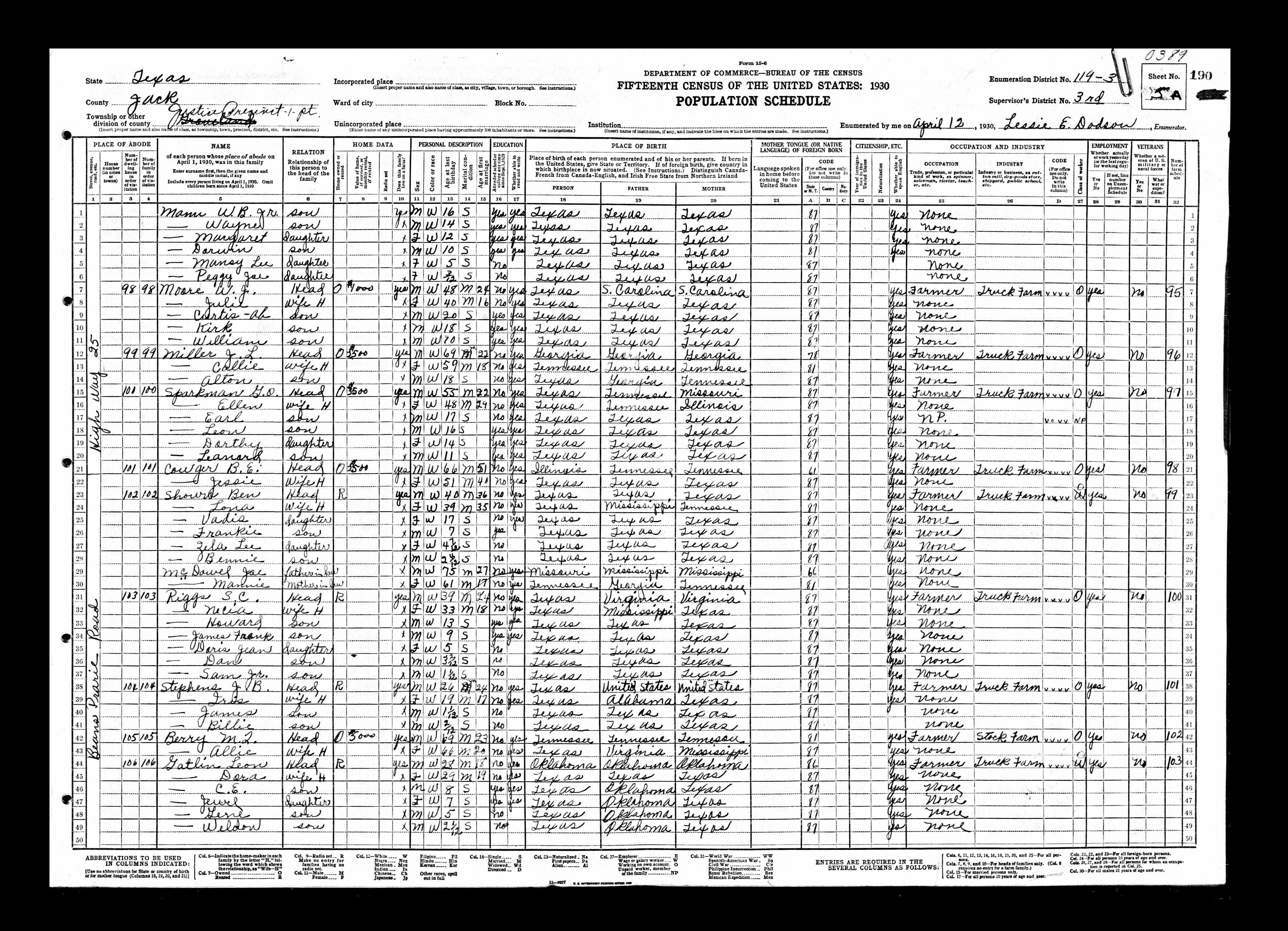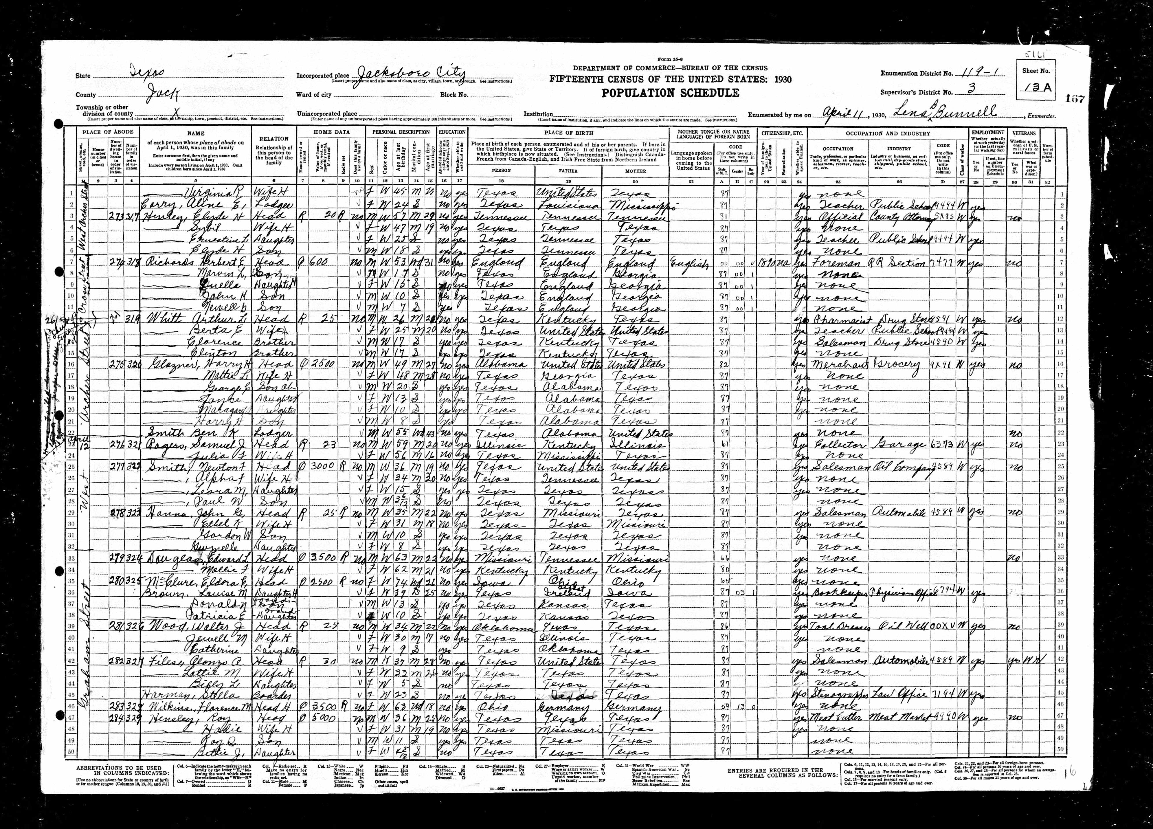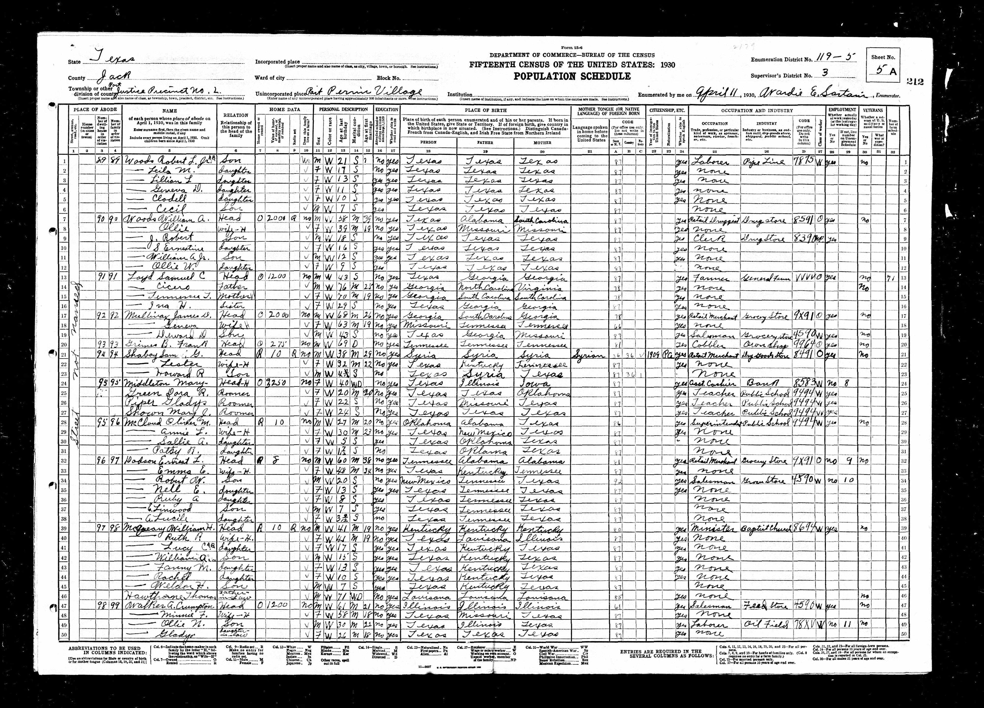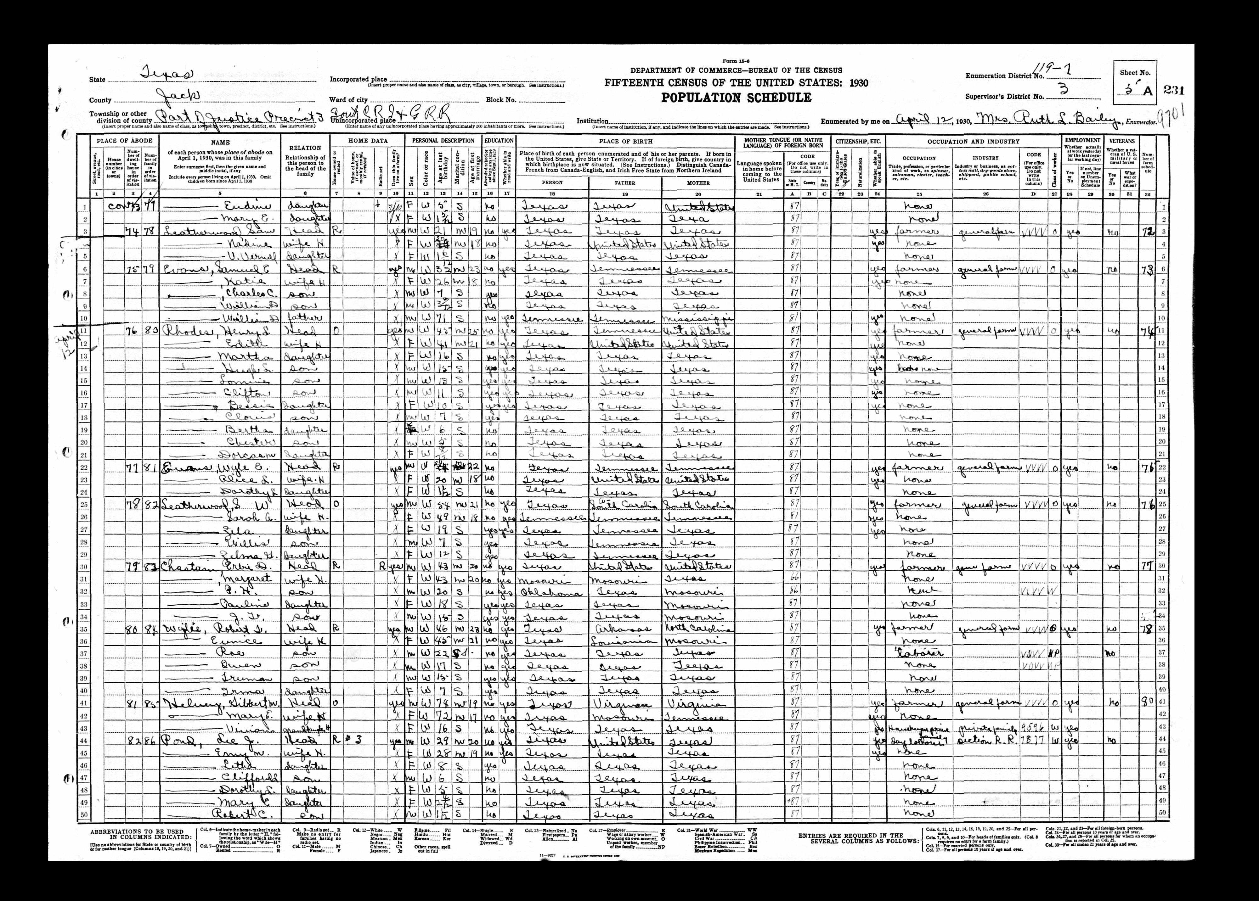 | Links to Large Images of Handwritten 1930 Census Pages | |||||||||||||||||||||