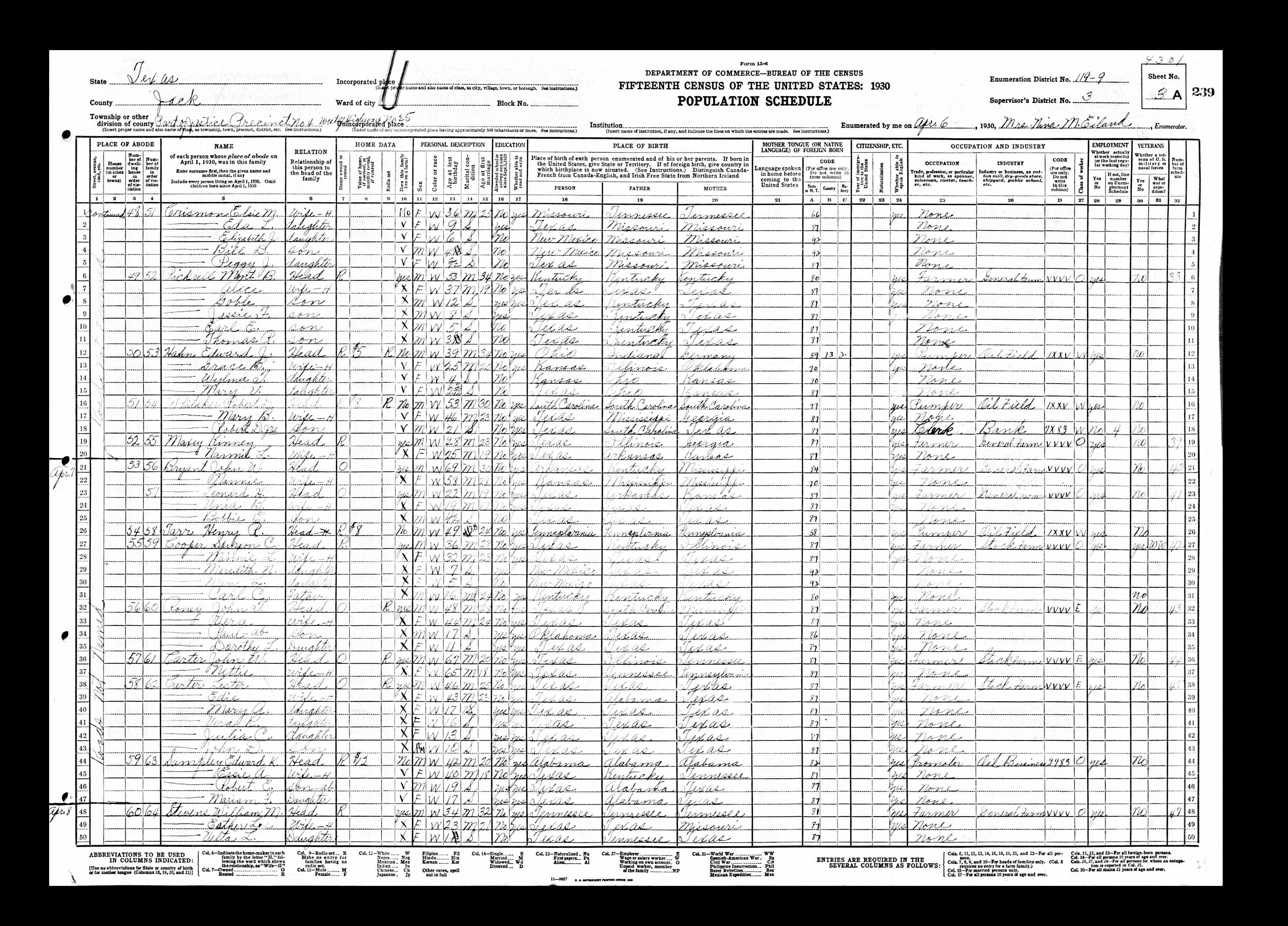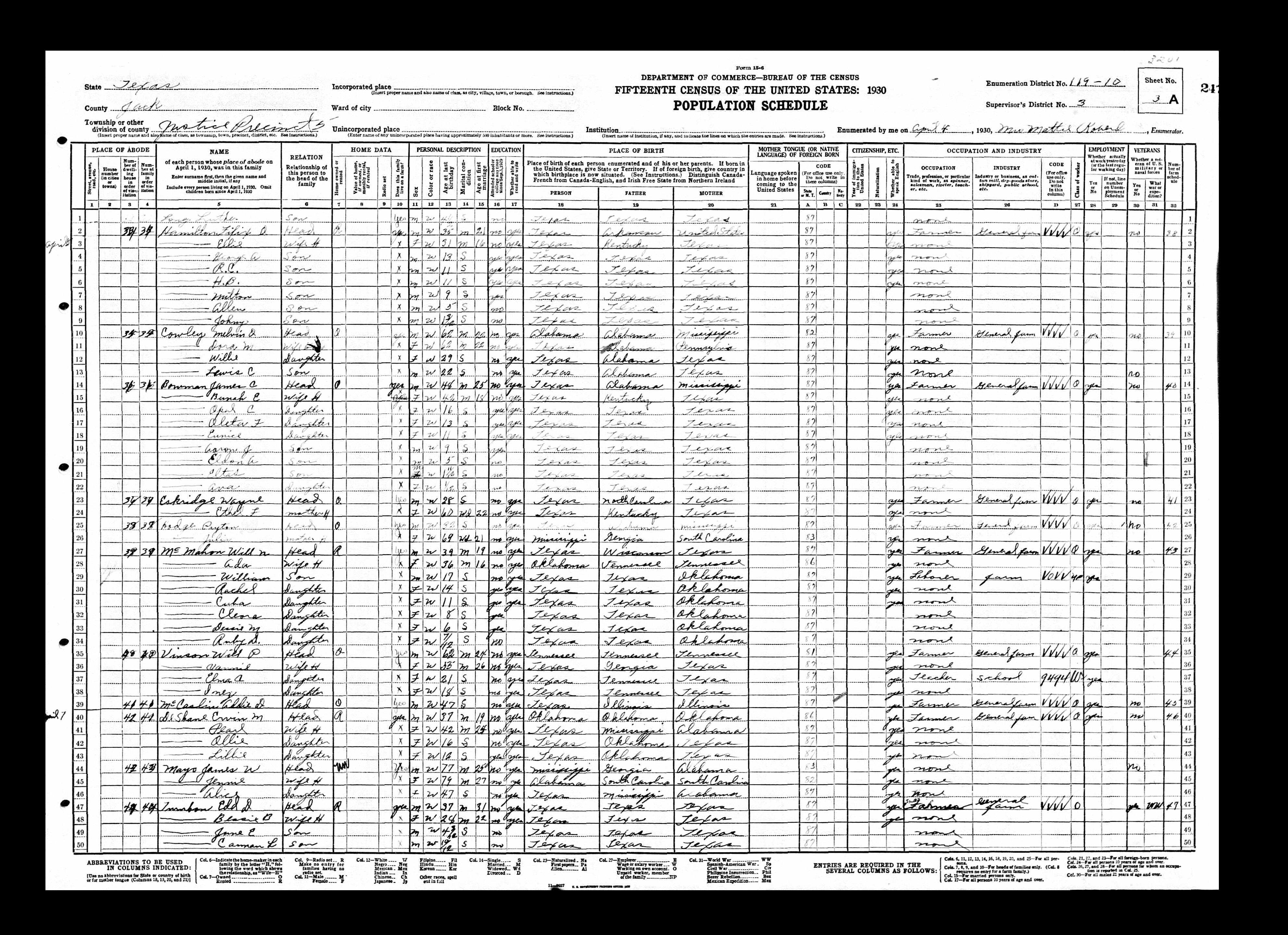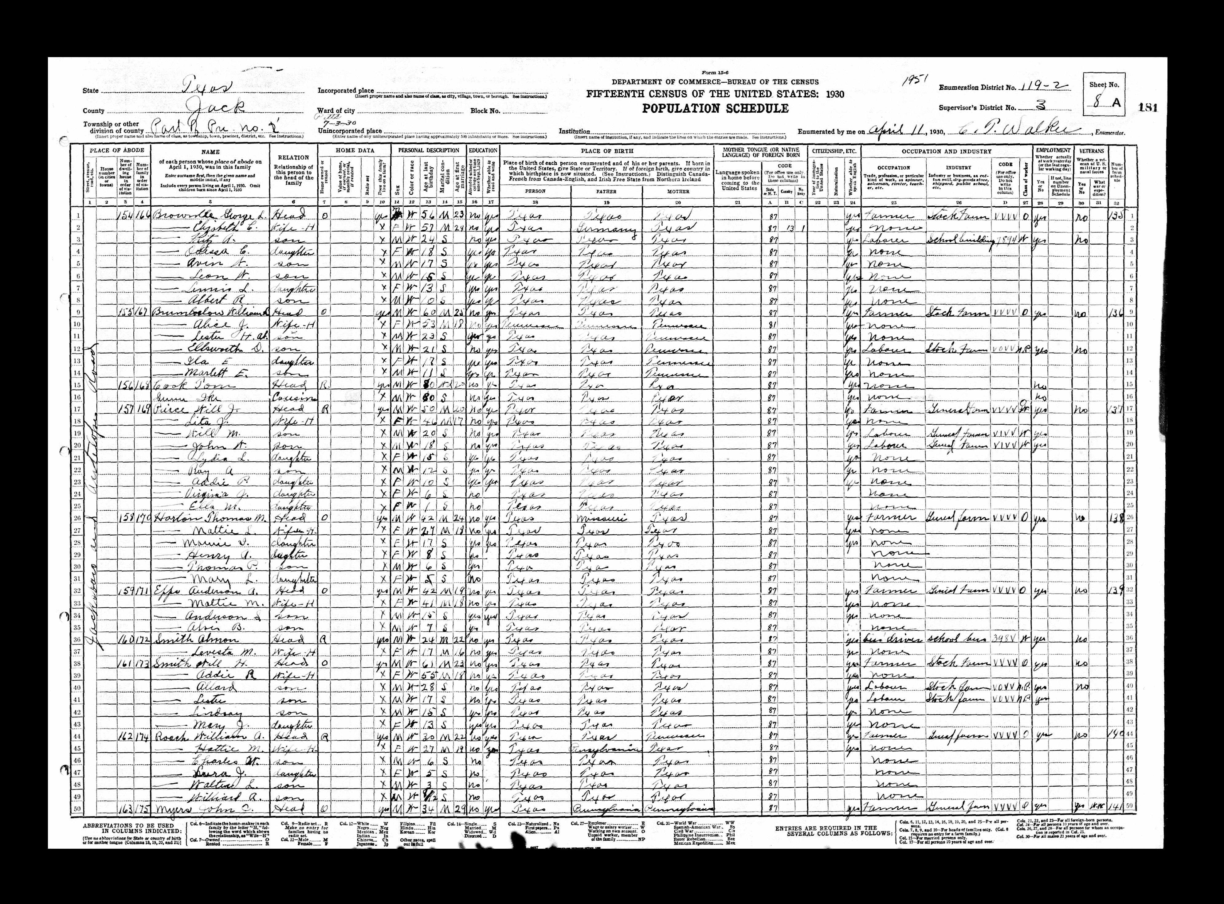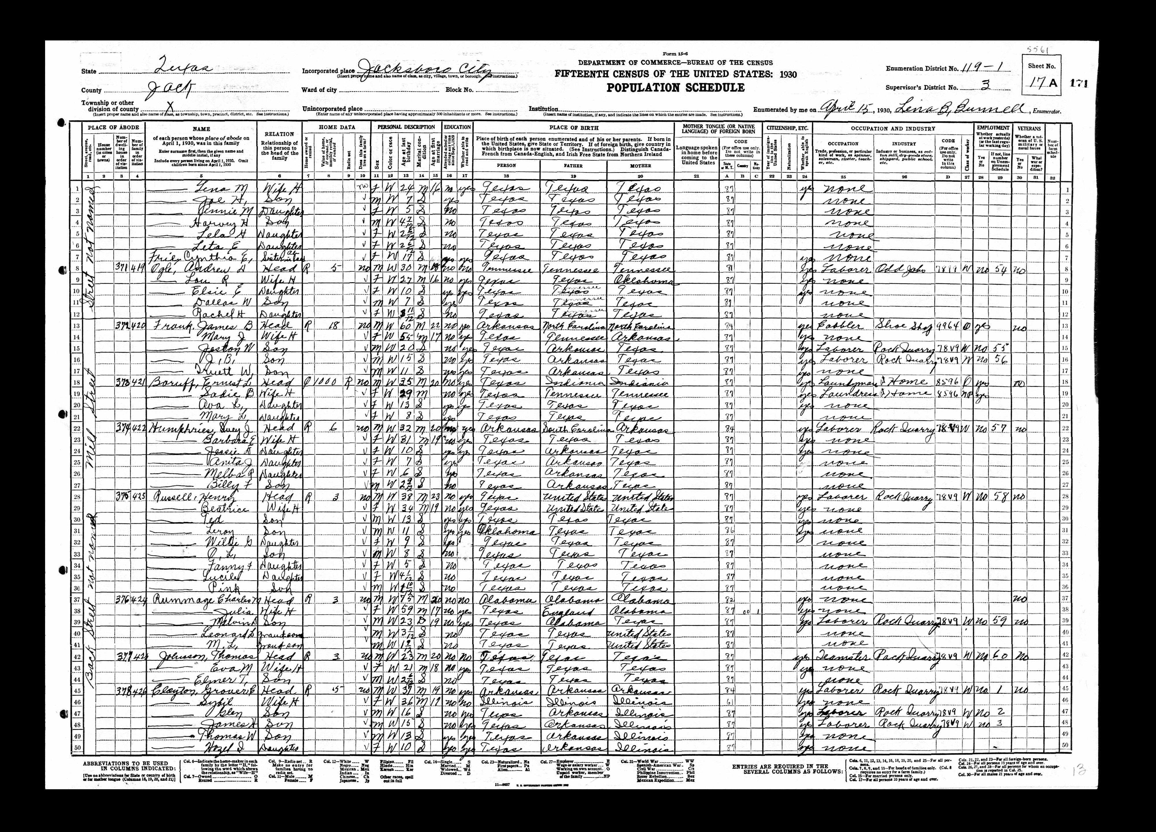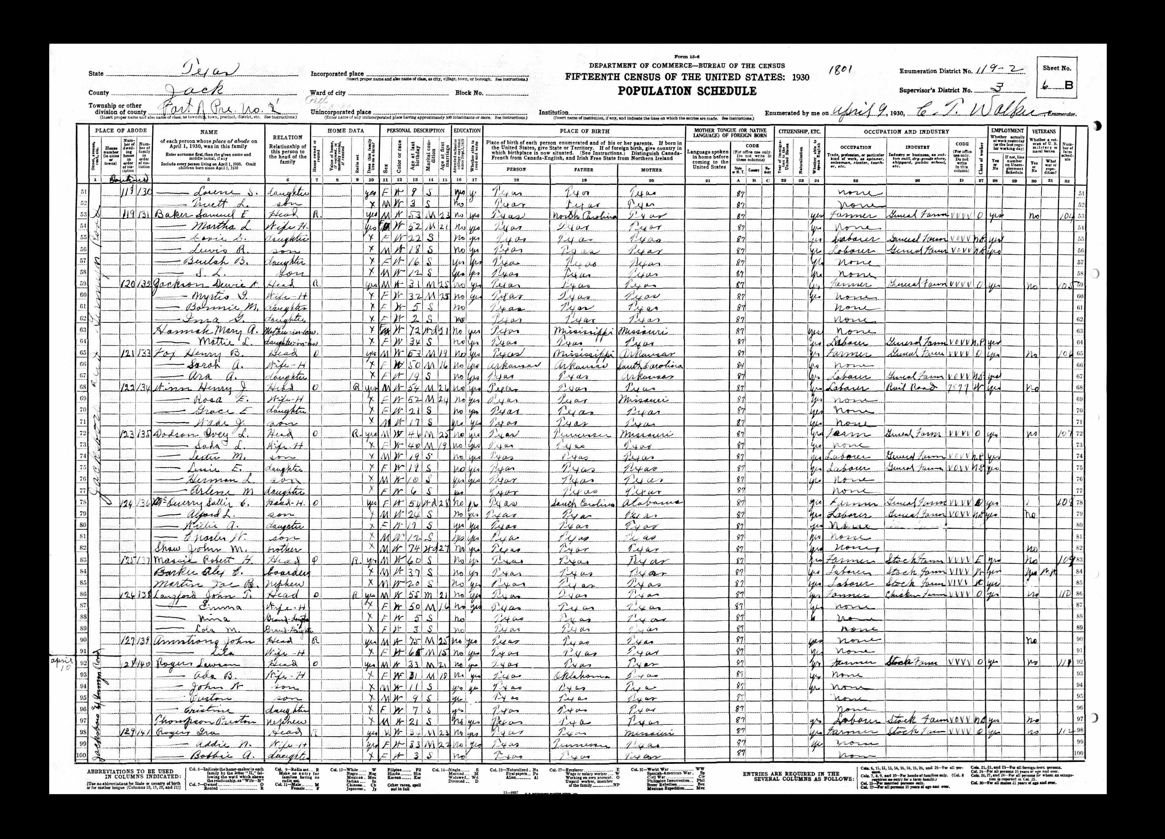| Links to Large Images of Handwritten 1930 Census Pages | |||||||||||||||||||||