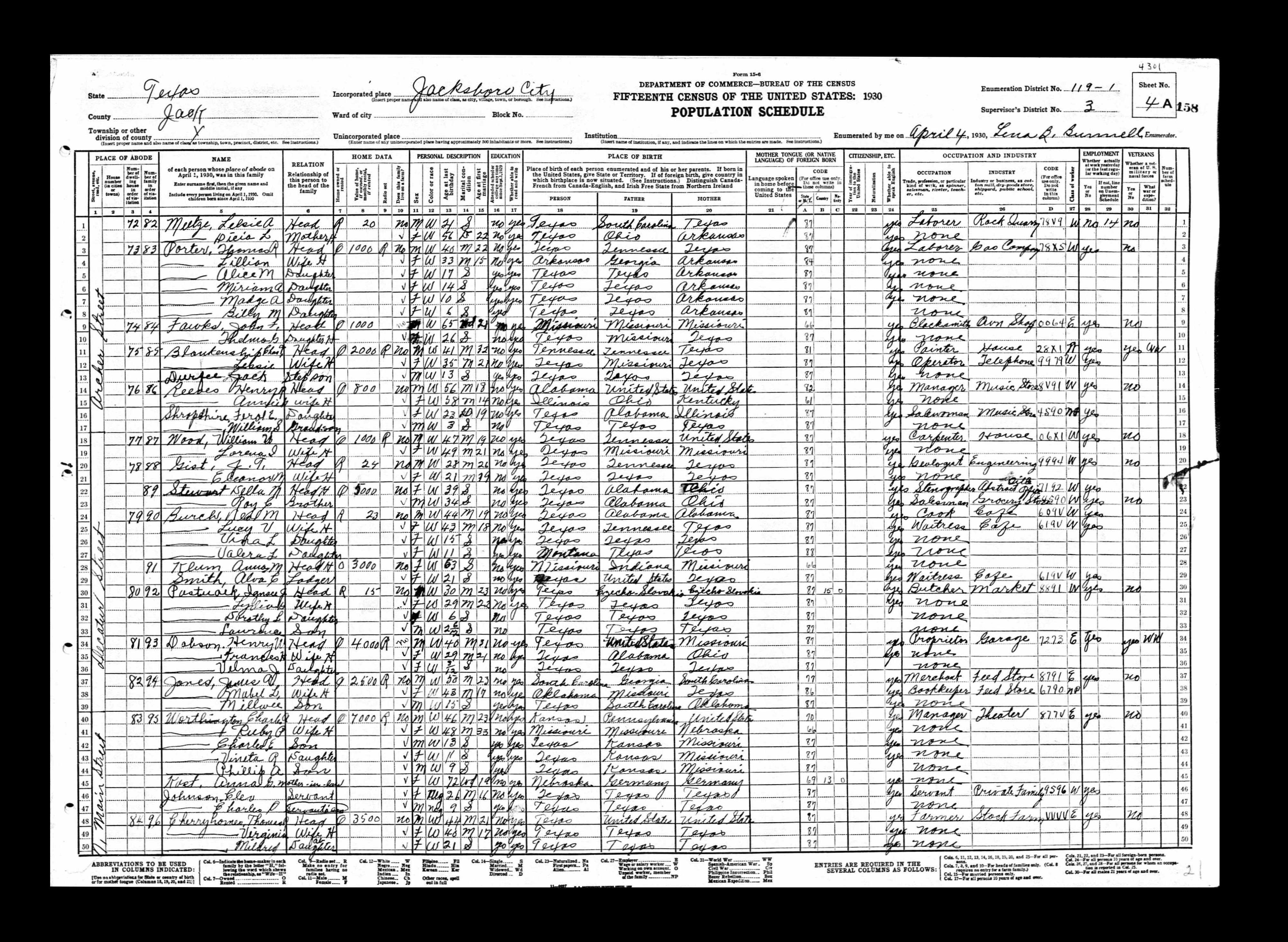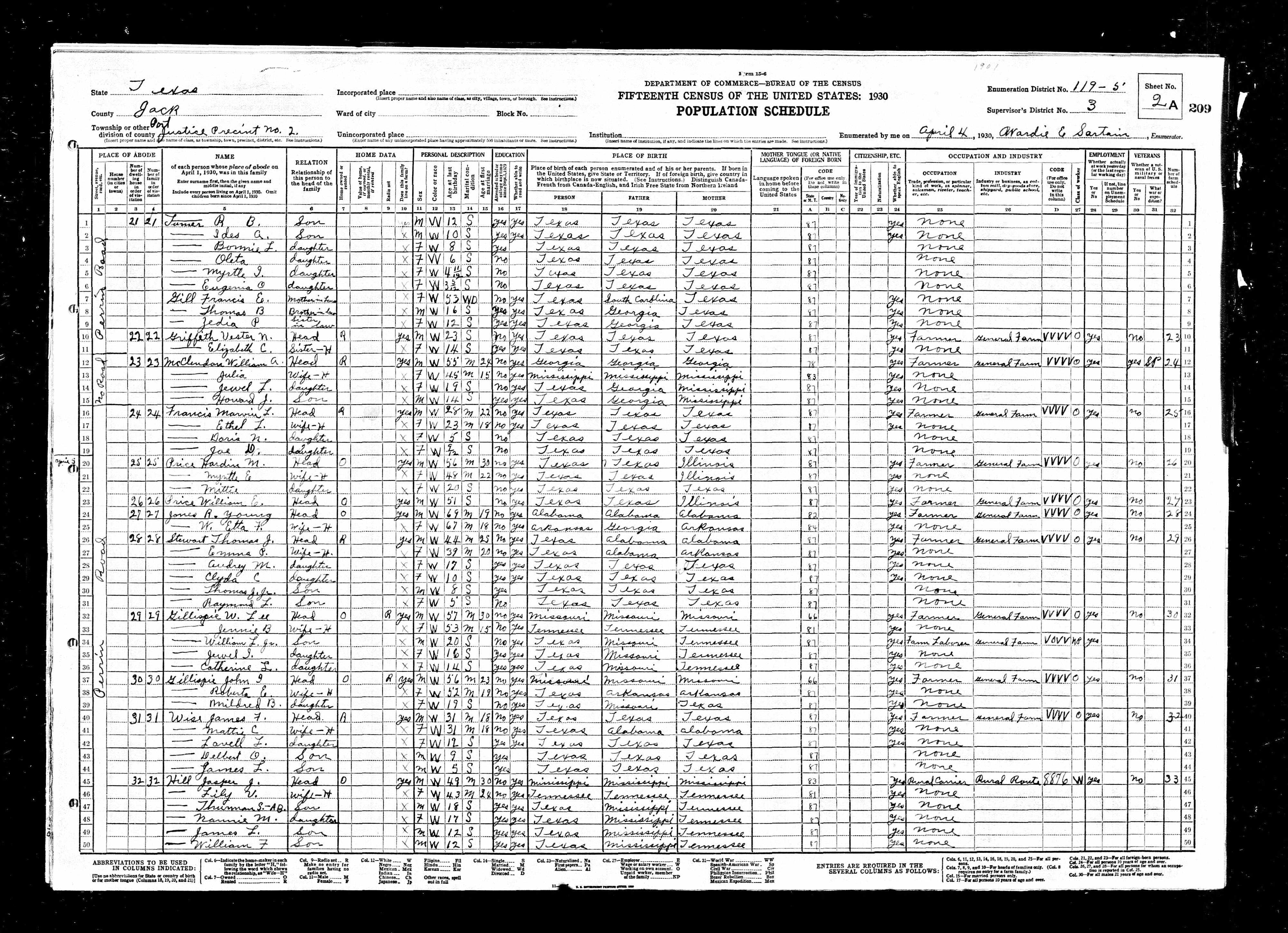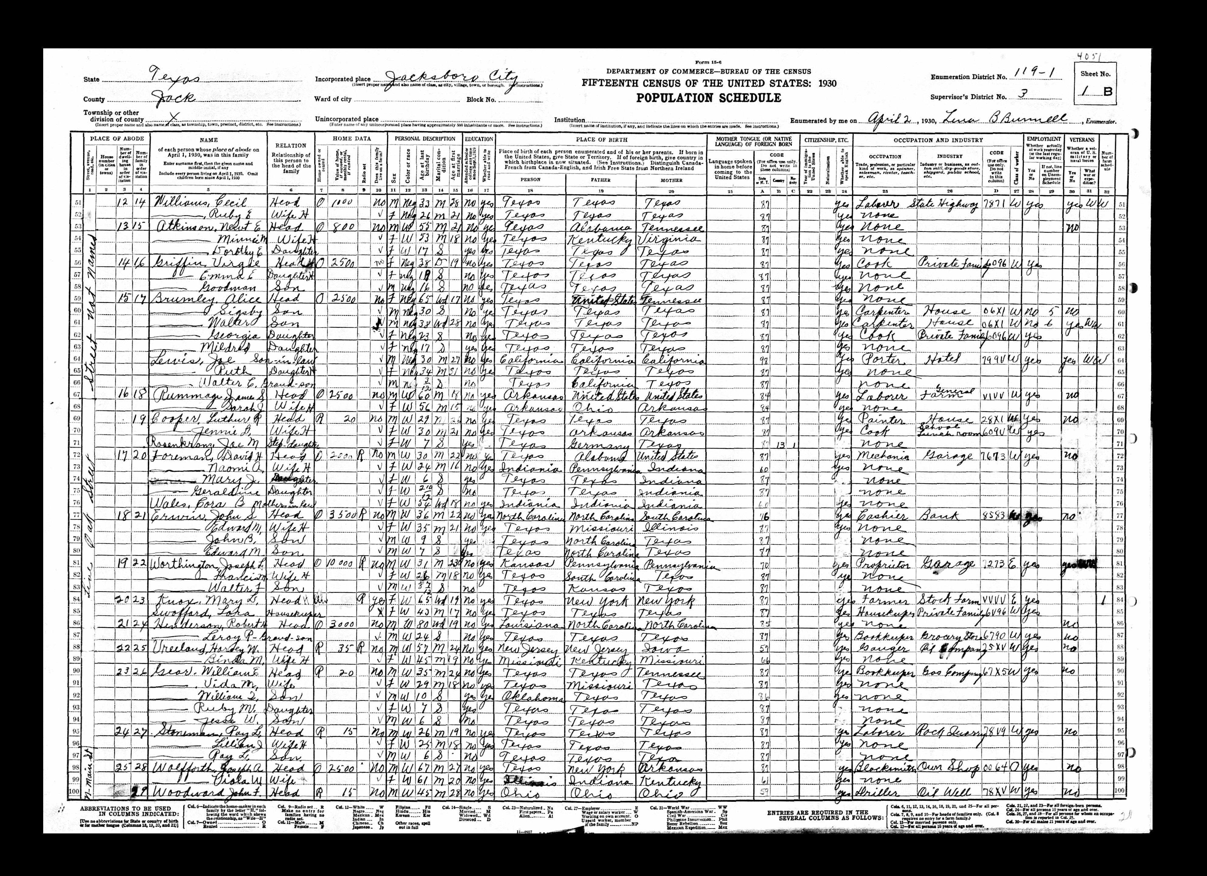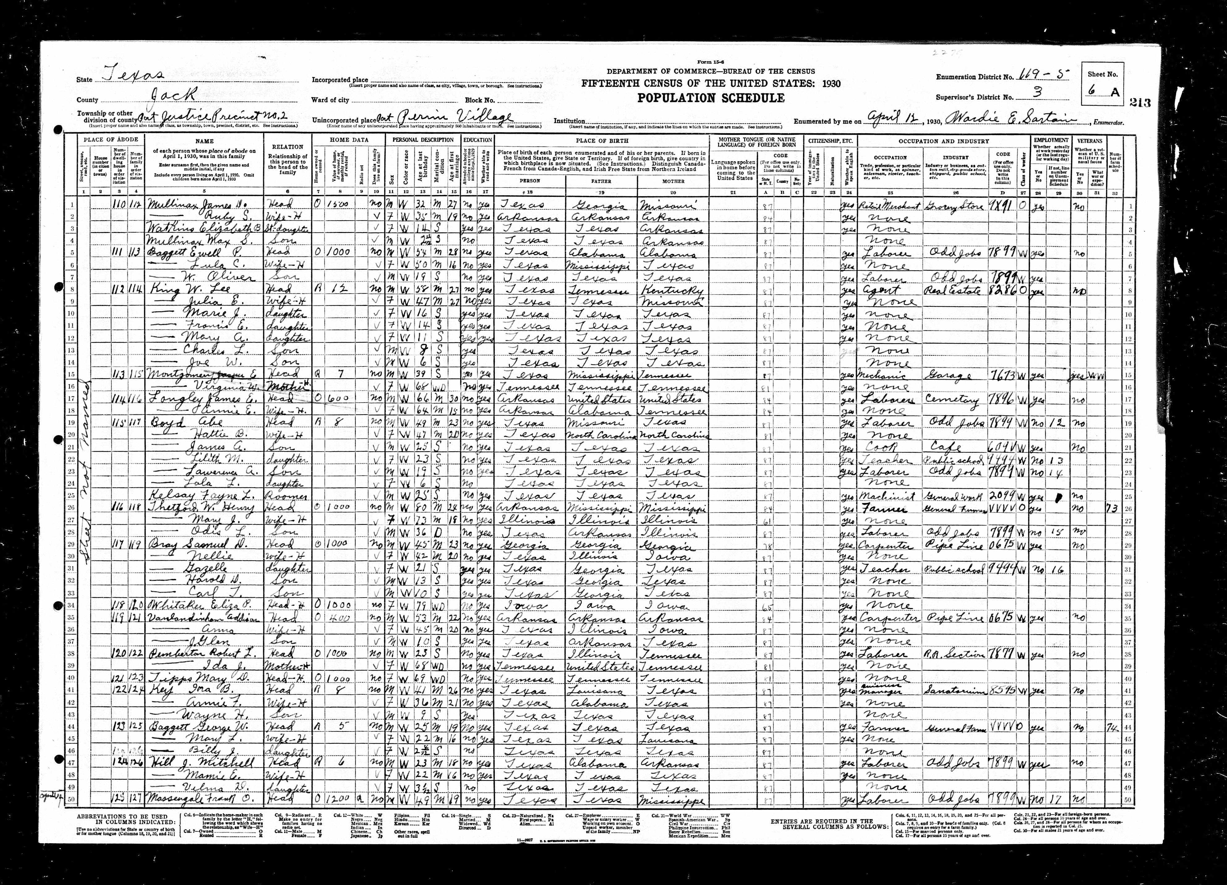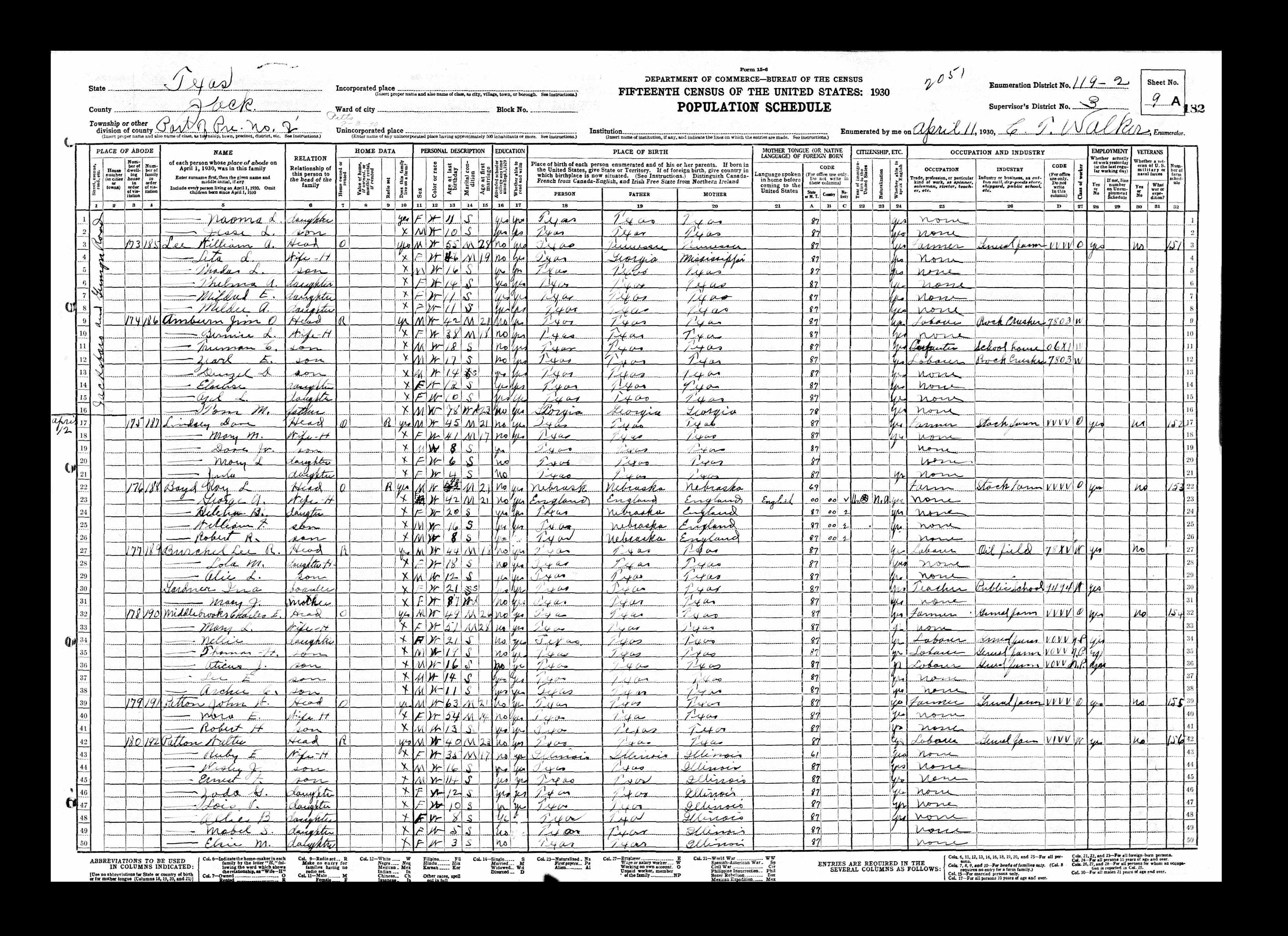 | Links to Large Images of Handwritten 1930 Census Pages | |||||||||||||||||||||