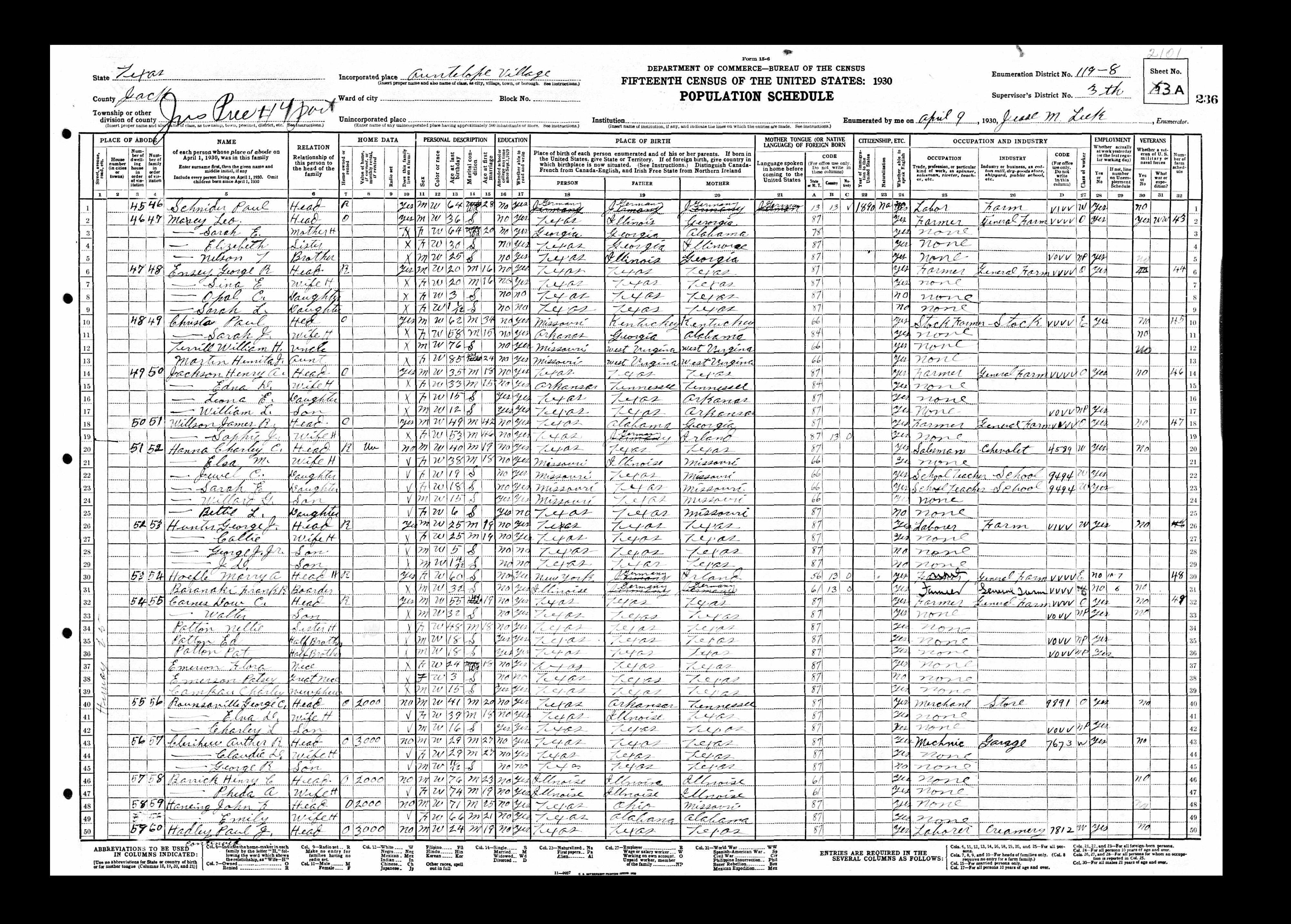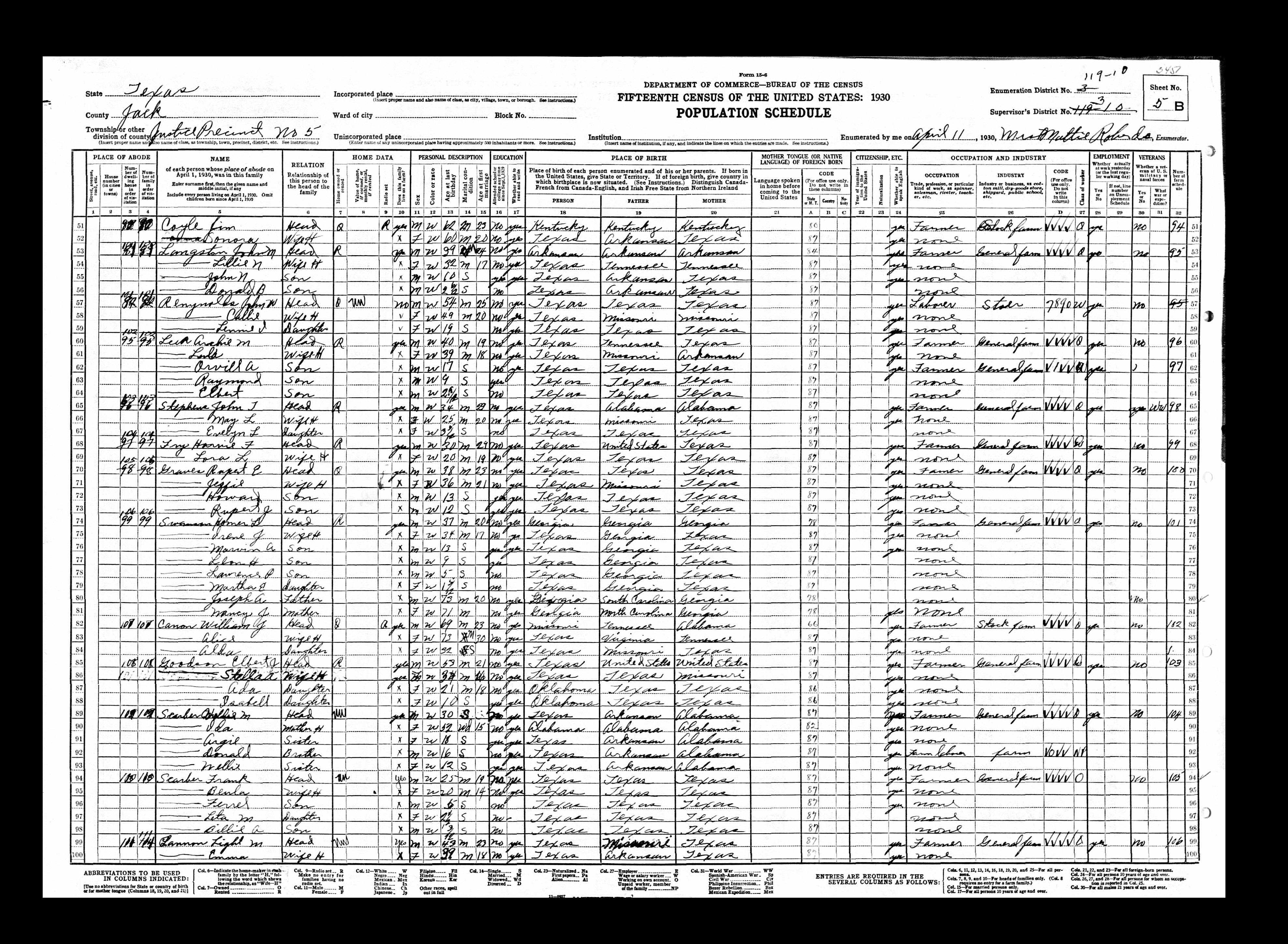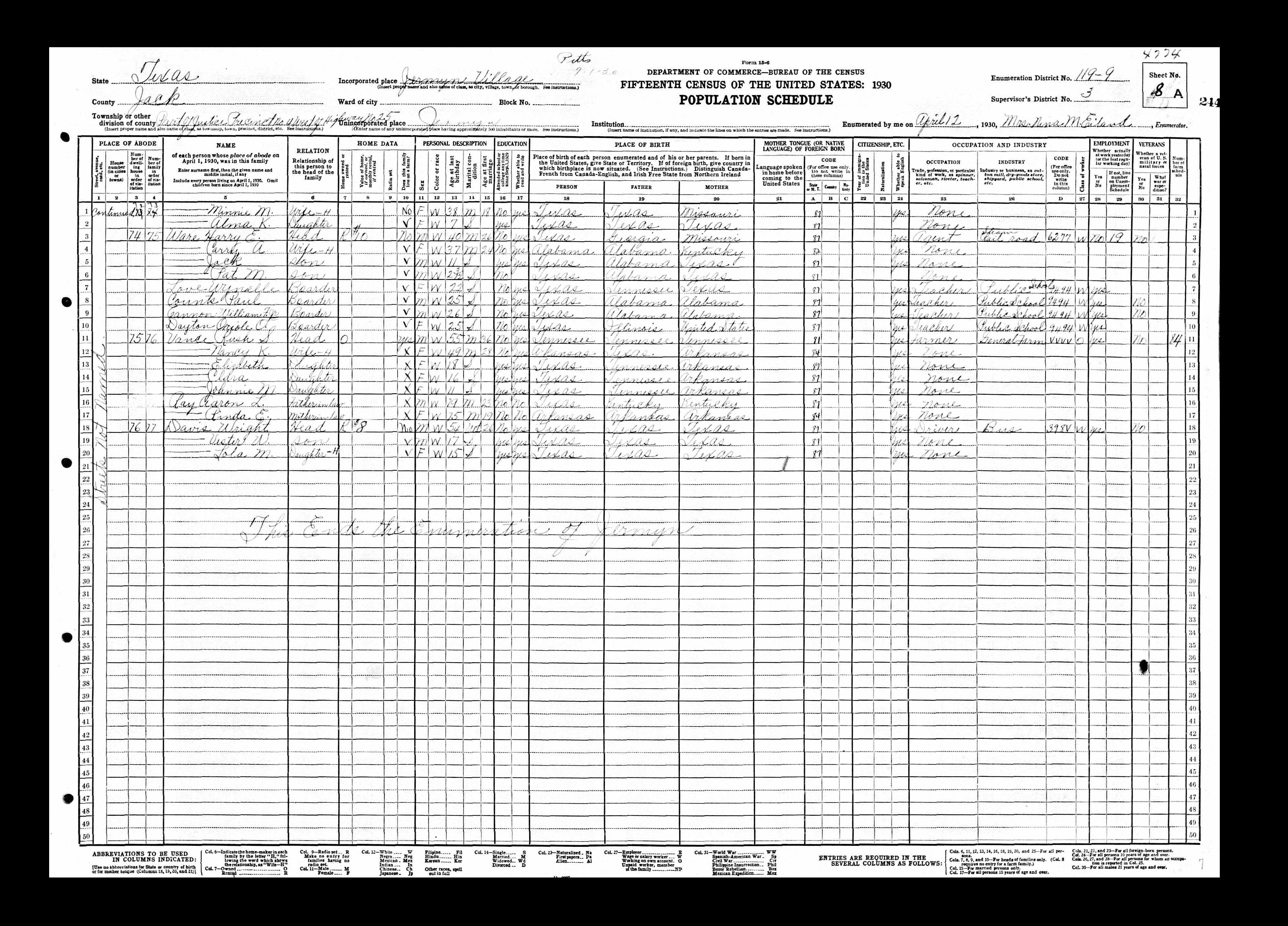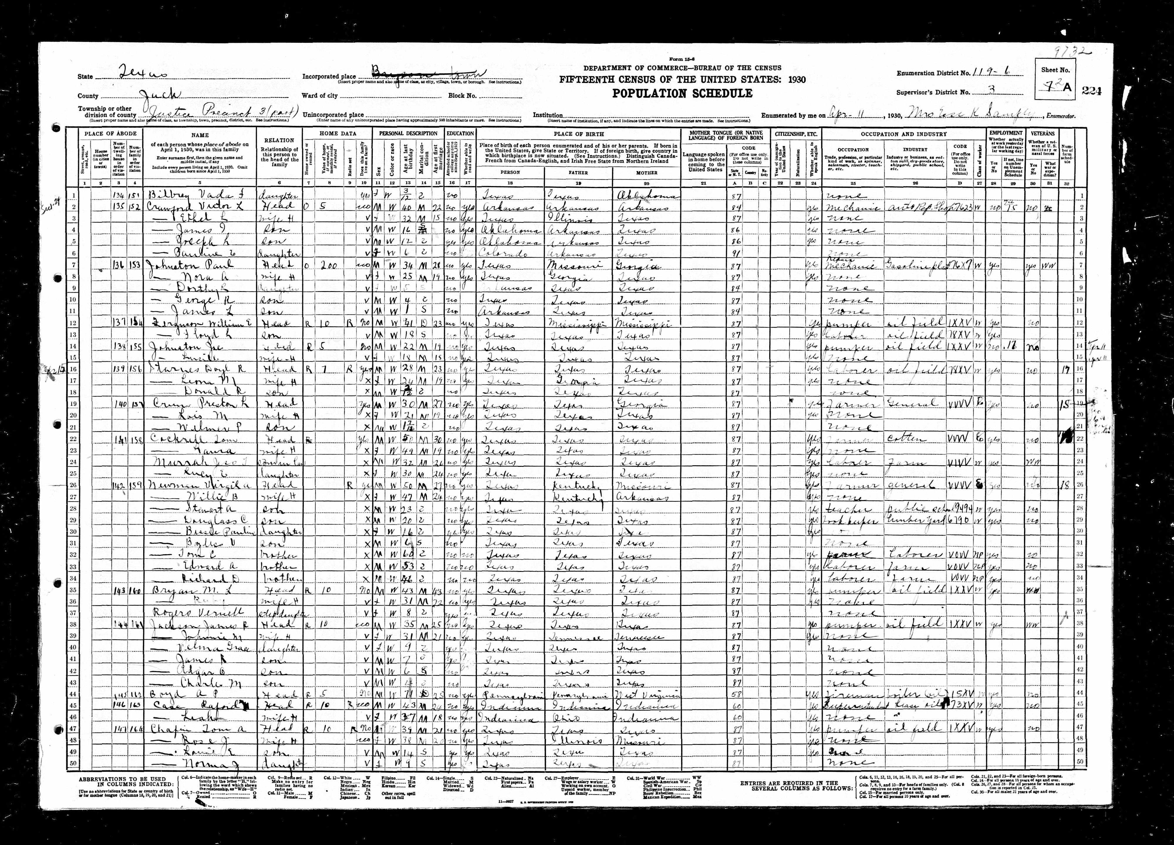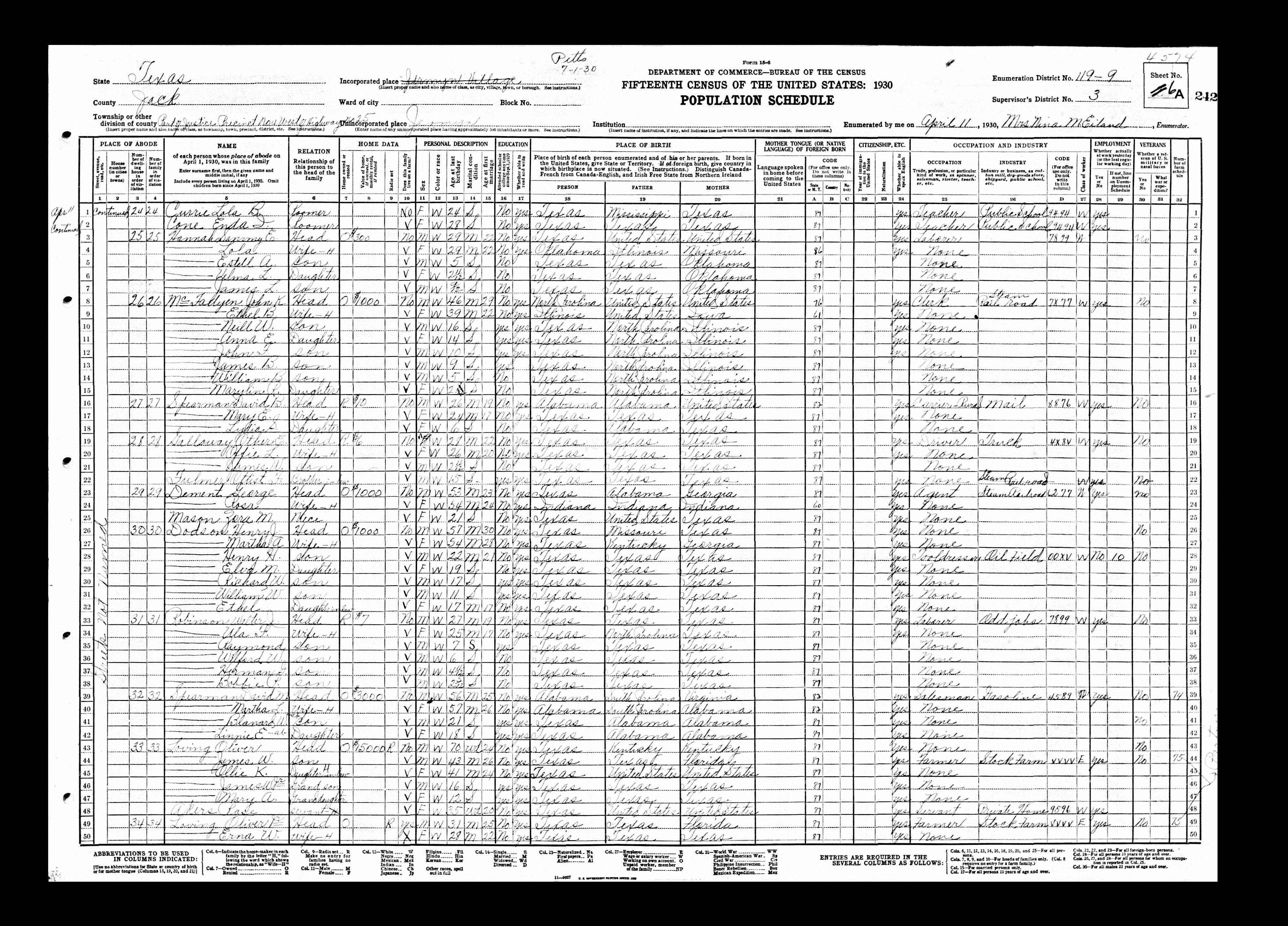 | Links to Large Images of Handwritten 1930 Census Pages | |||||||||||||||||||||