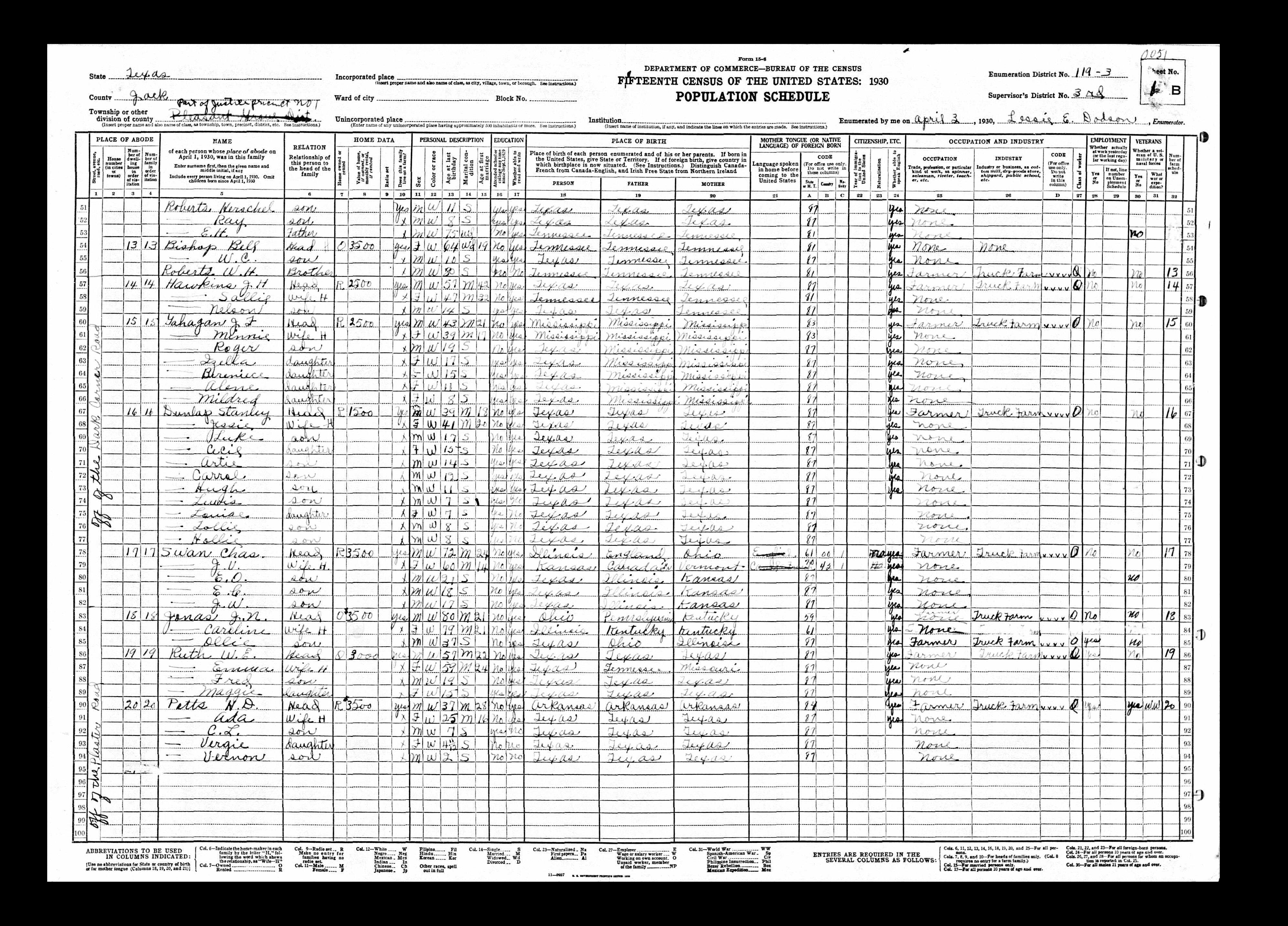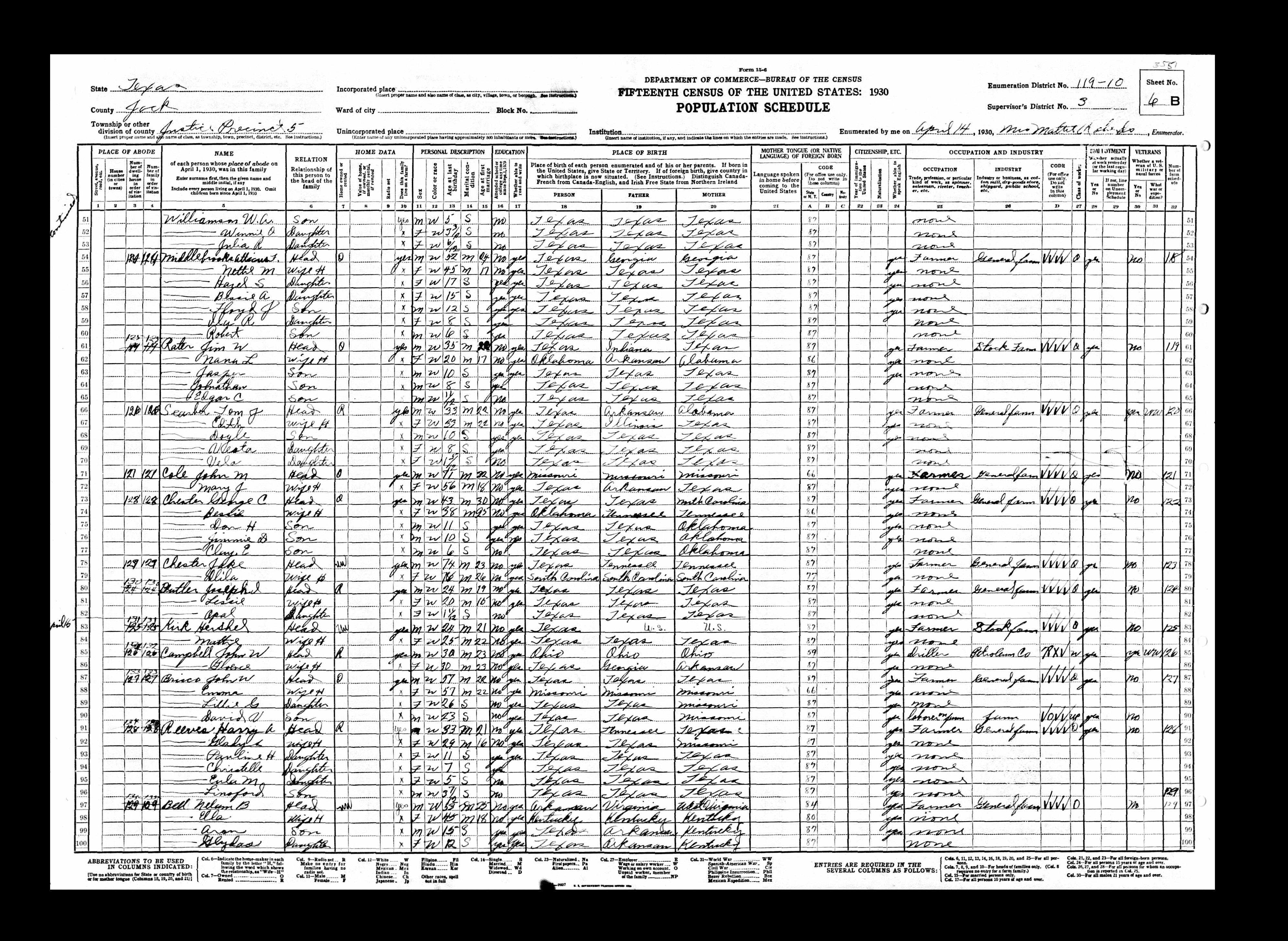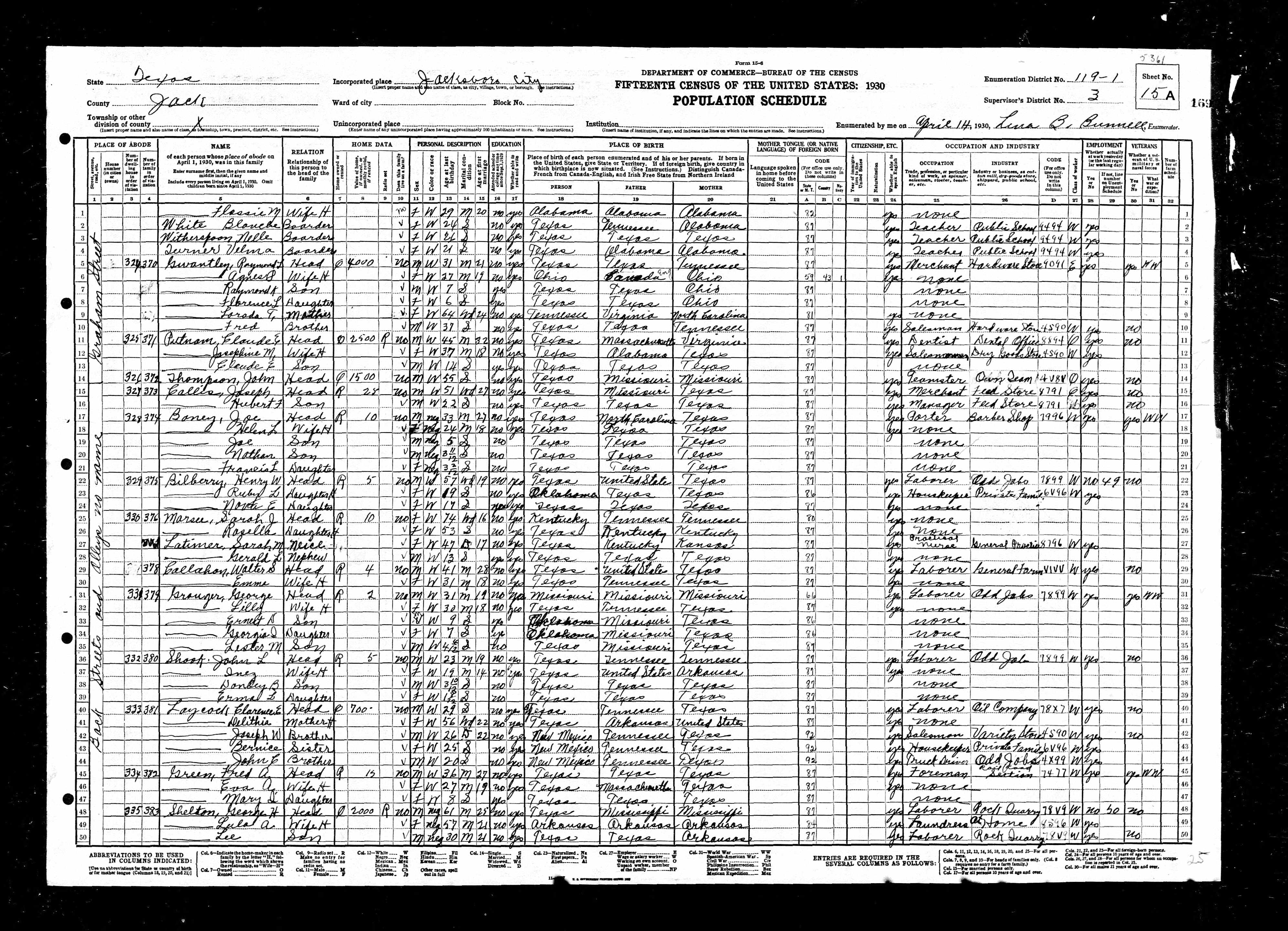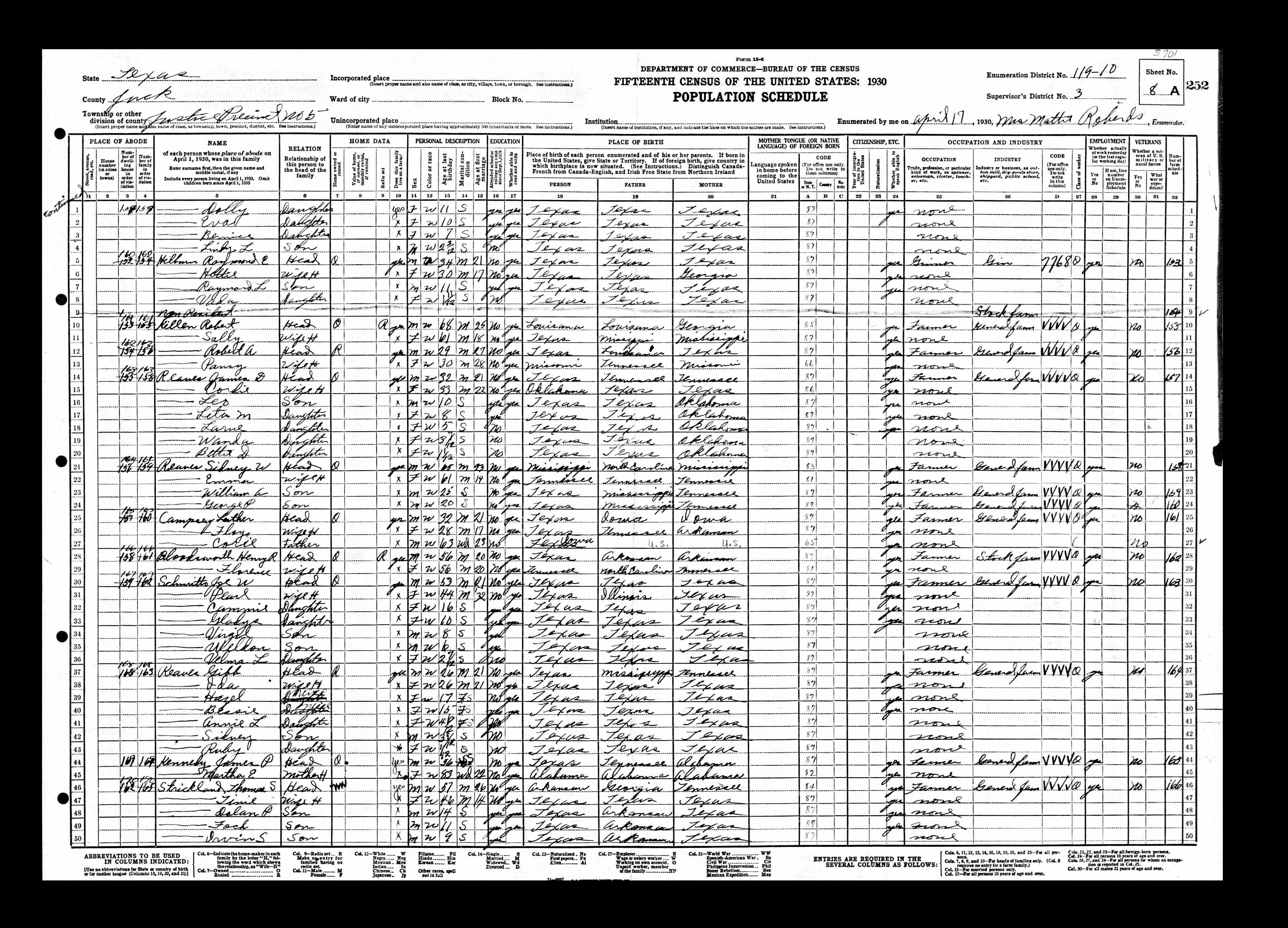 | Links to Large Images of Handwritten 1930 Census Pages | |||||||||||||||||||||