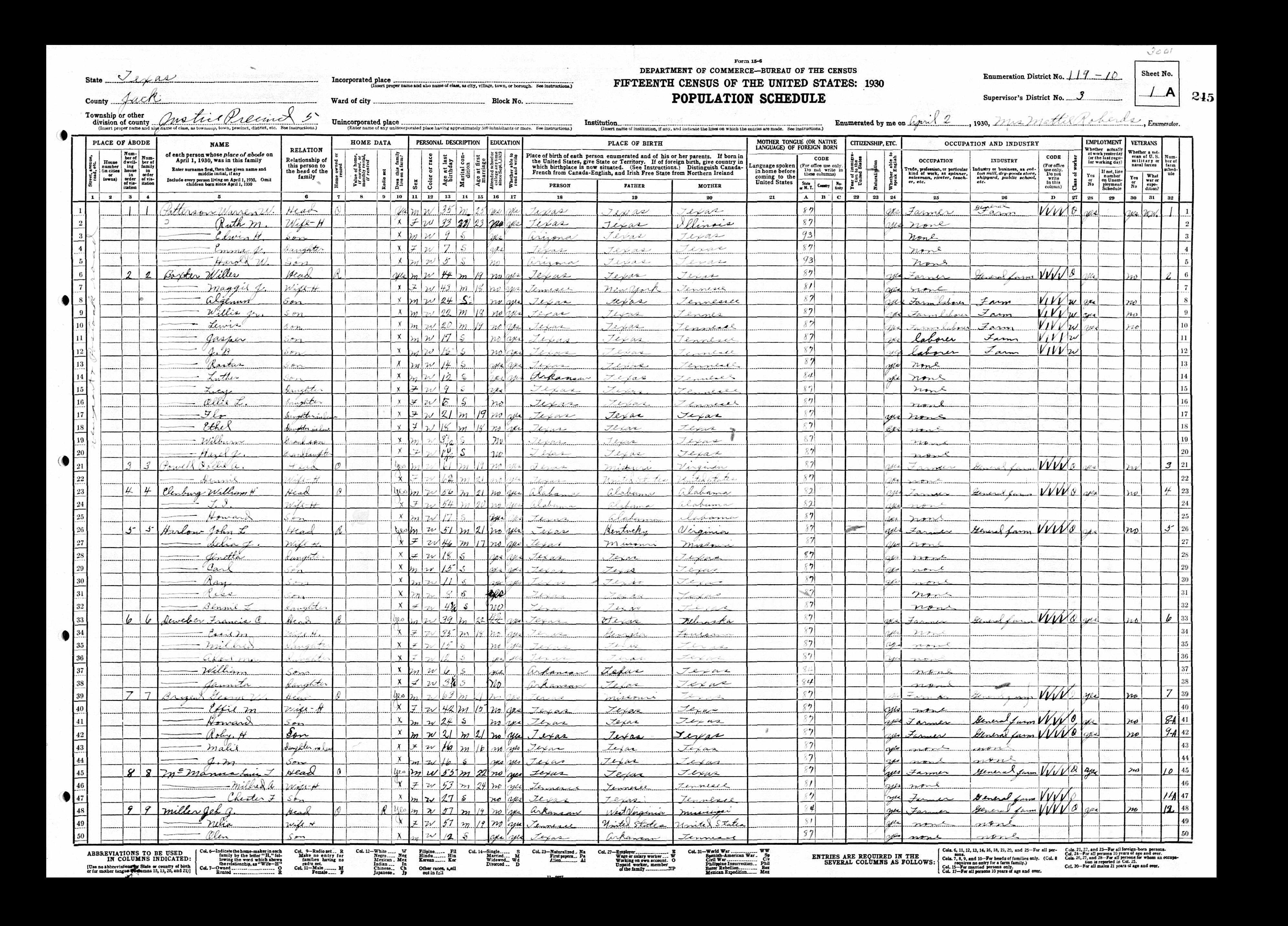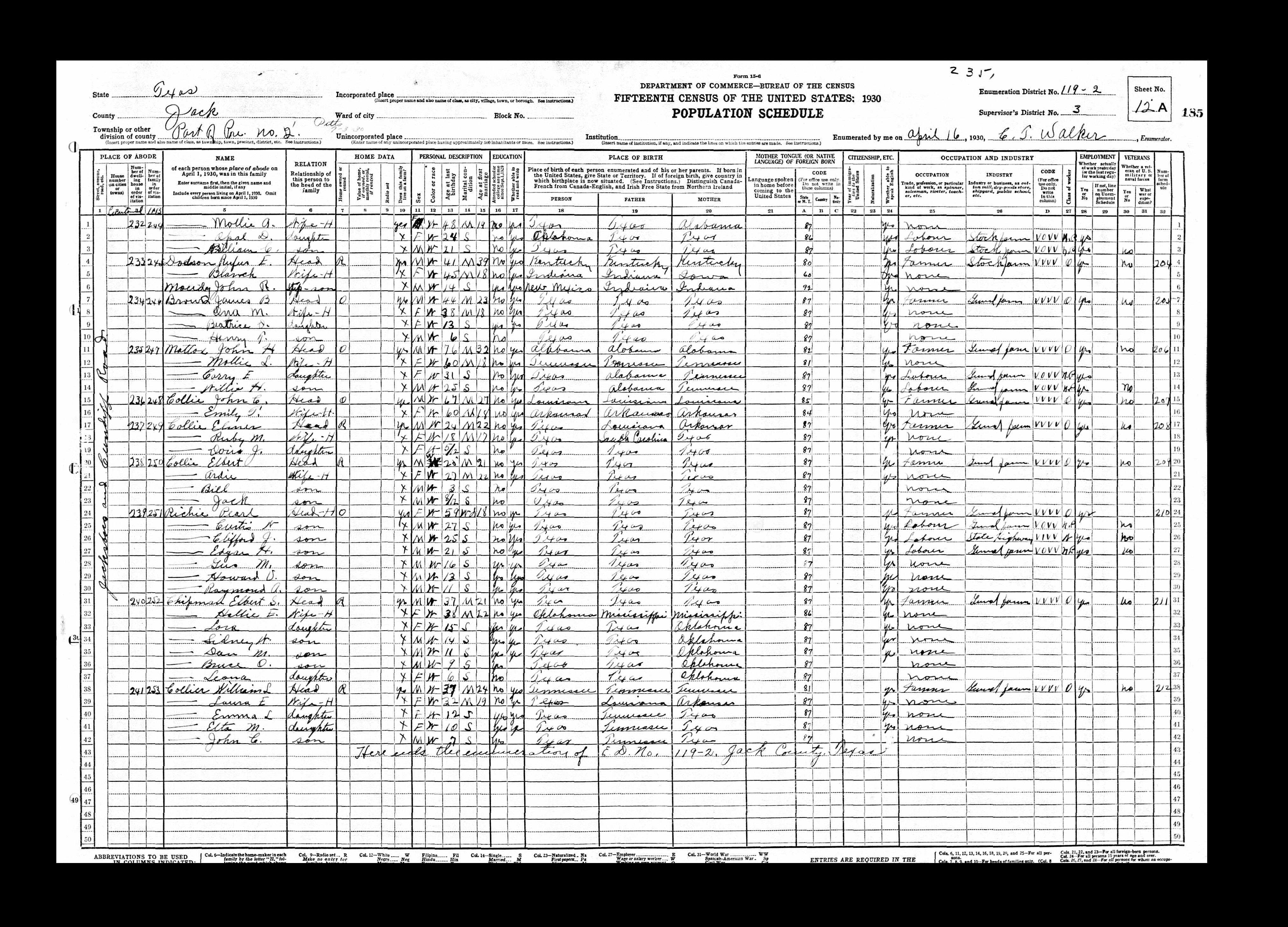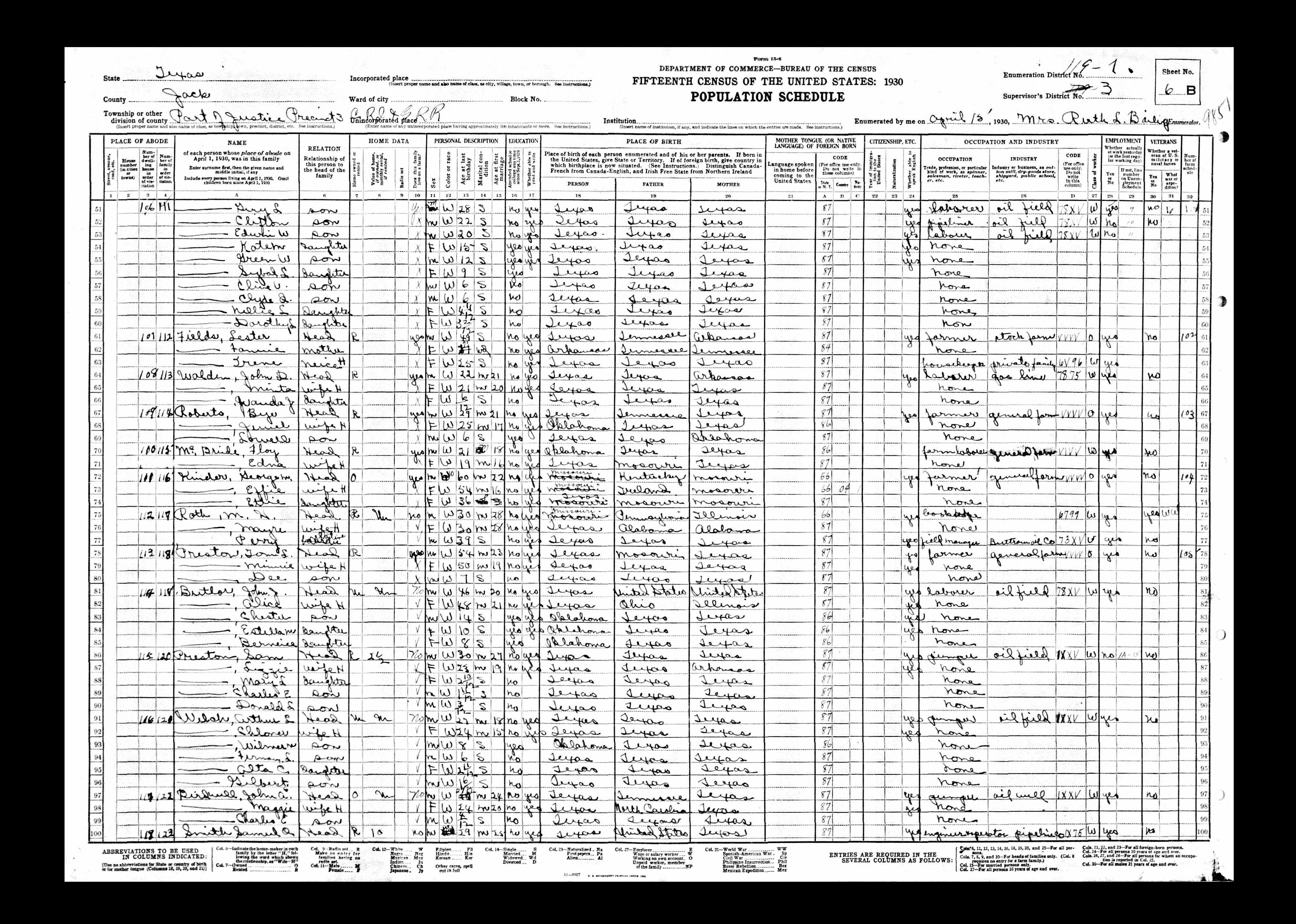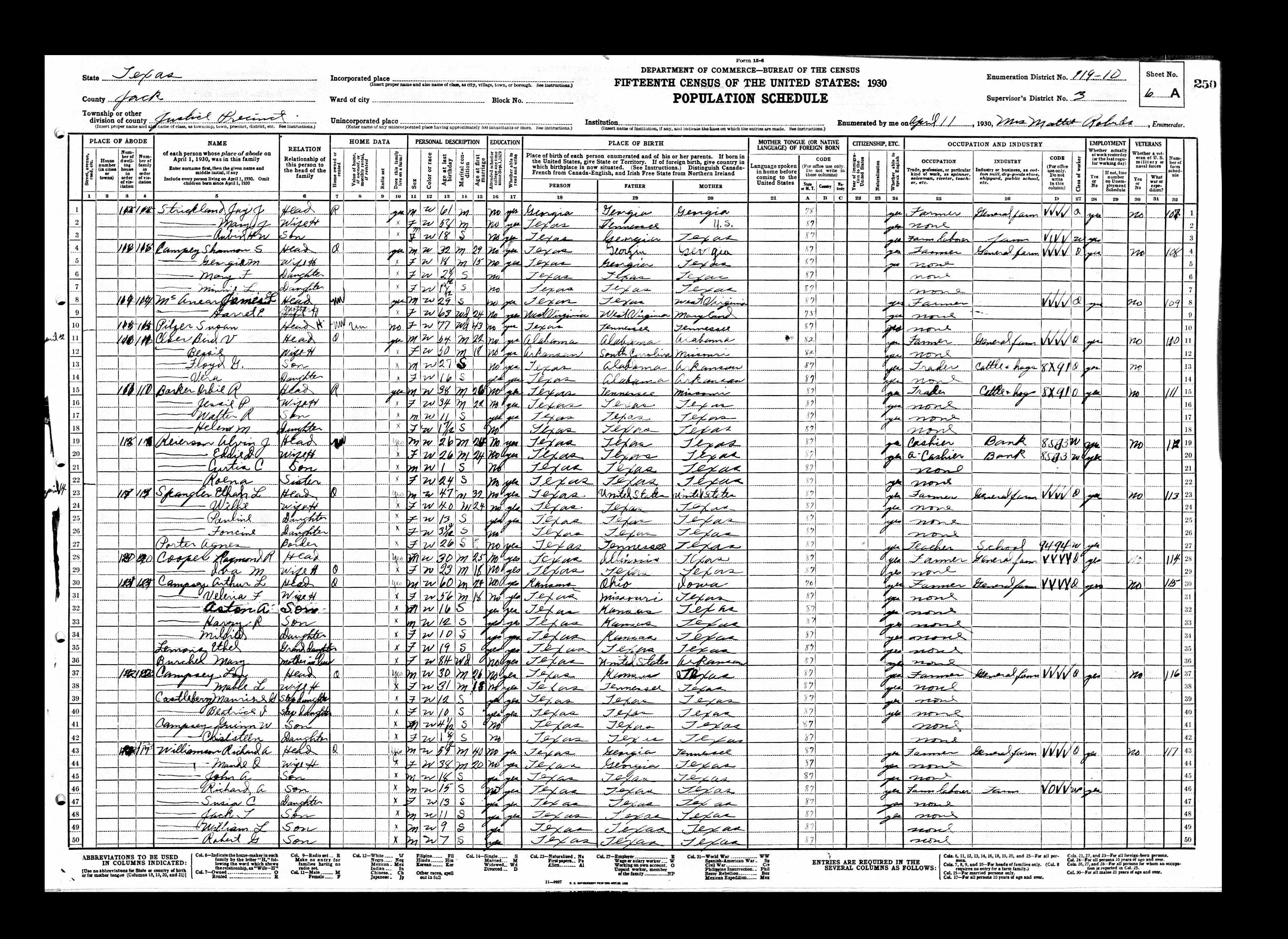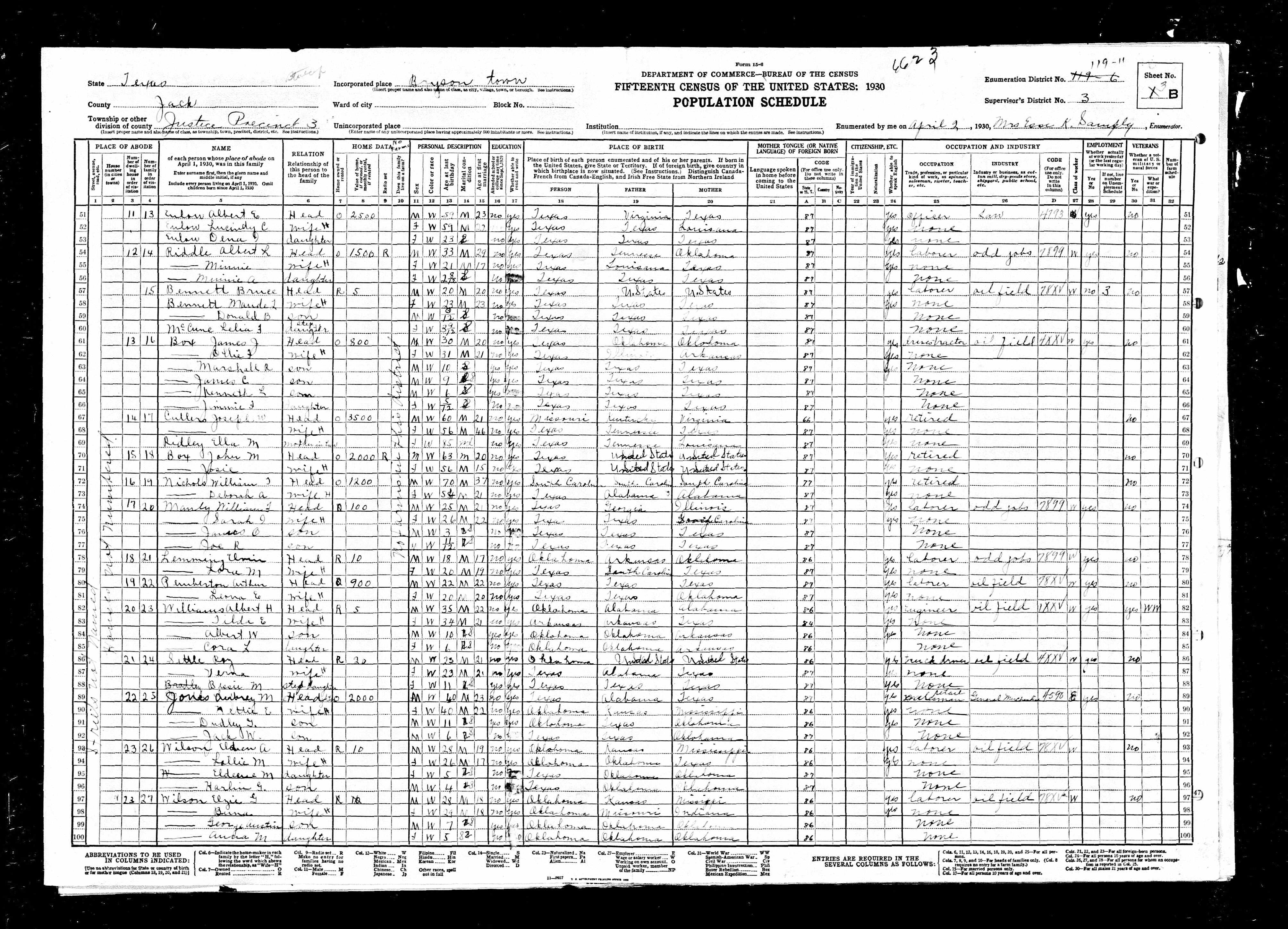 | Links to Large Images of Handwritten 1930 Census Pages | |||||||||||||||||||||