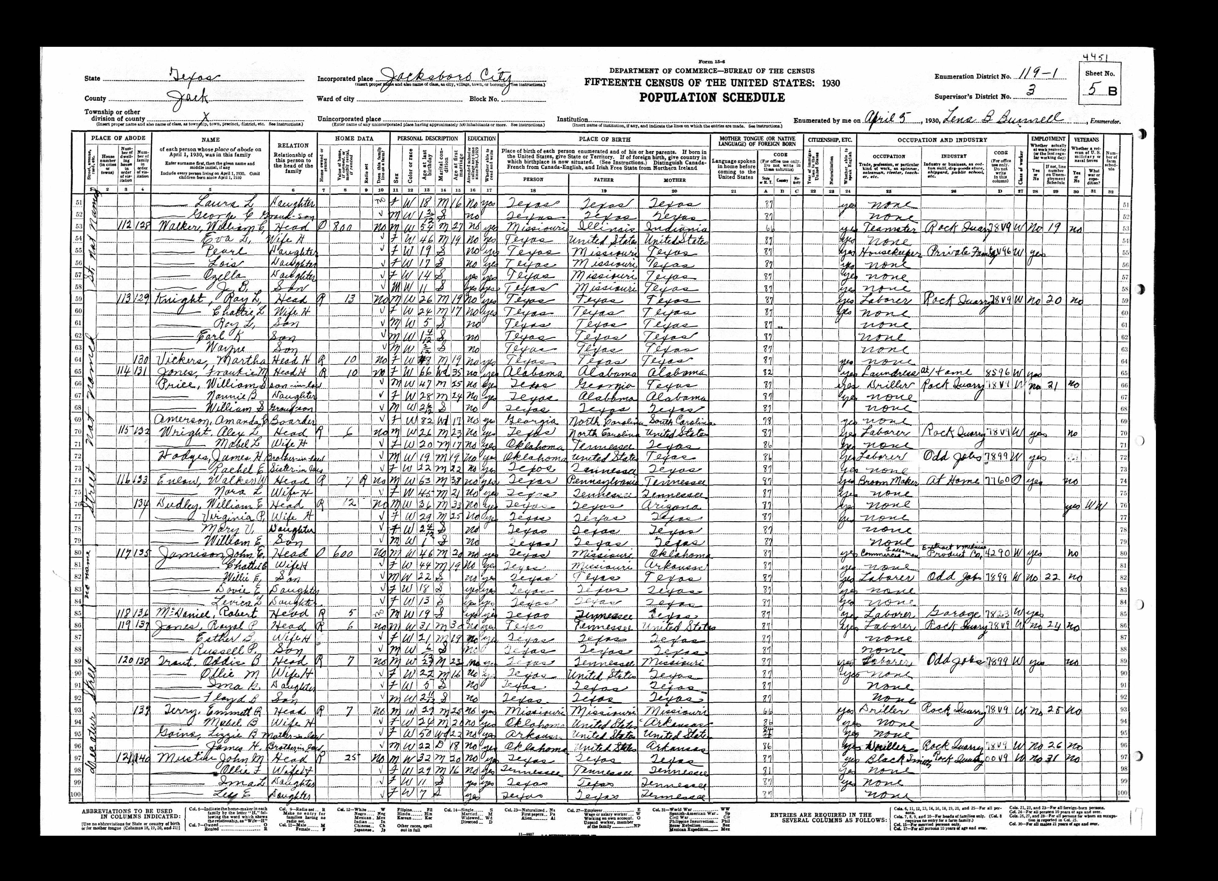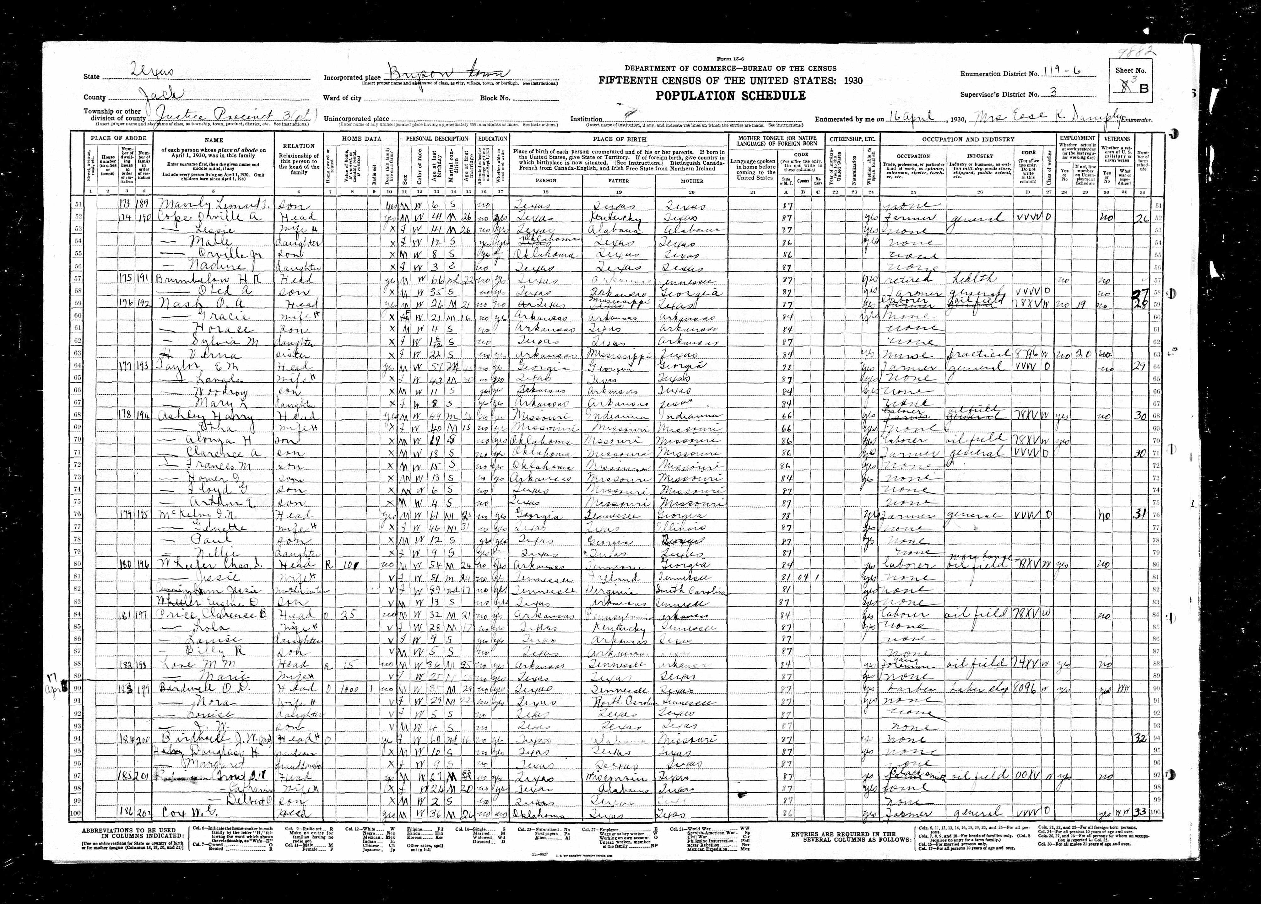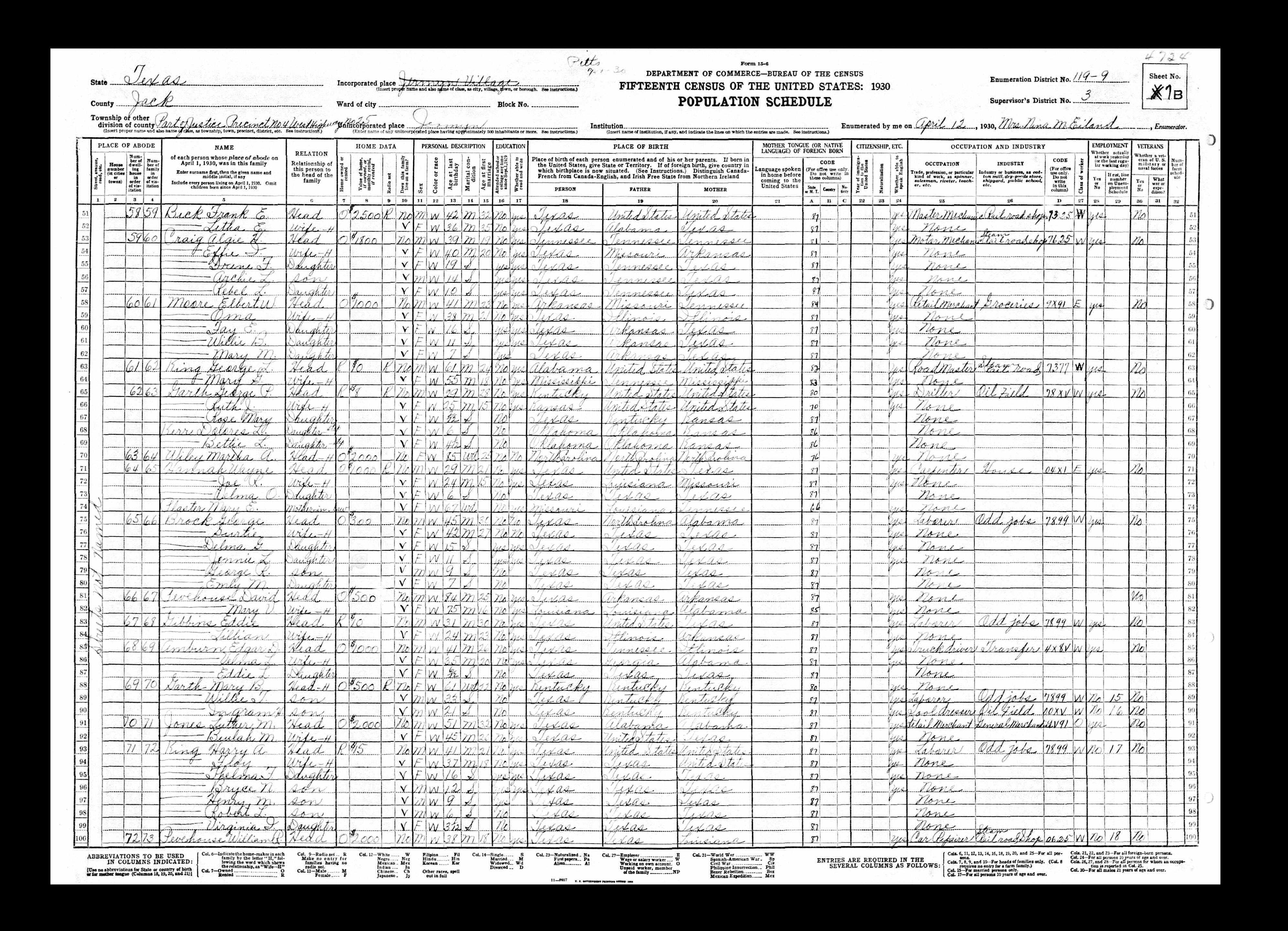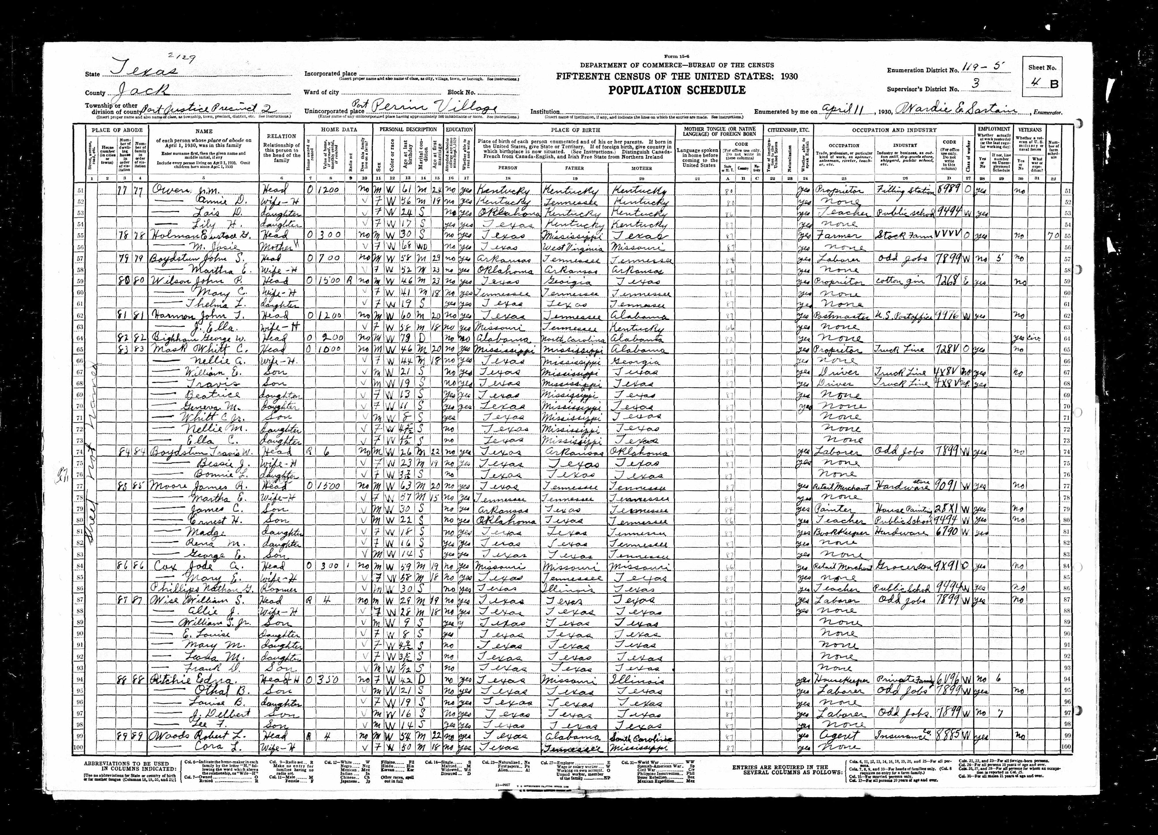 | Links to Large Images of Handwritten 1930 Census Pages | |||||||||||||||||||||
