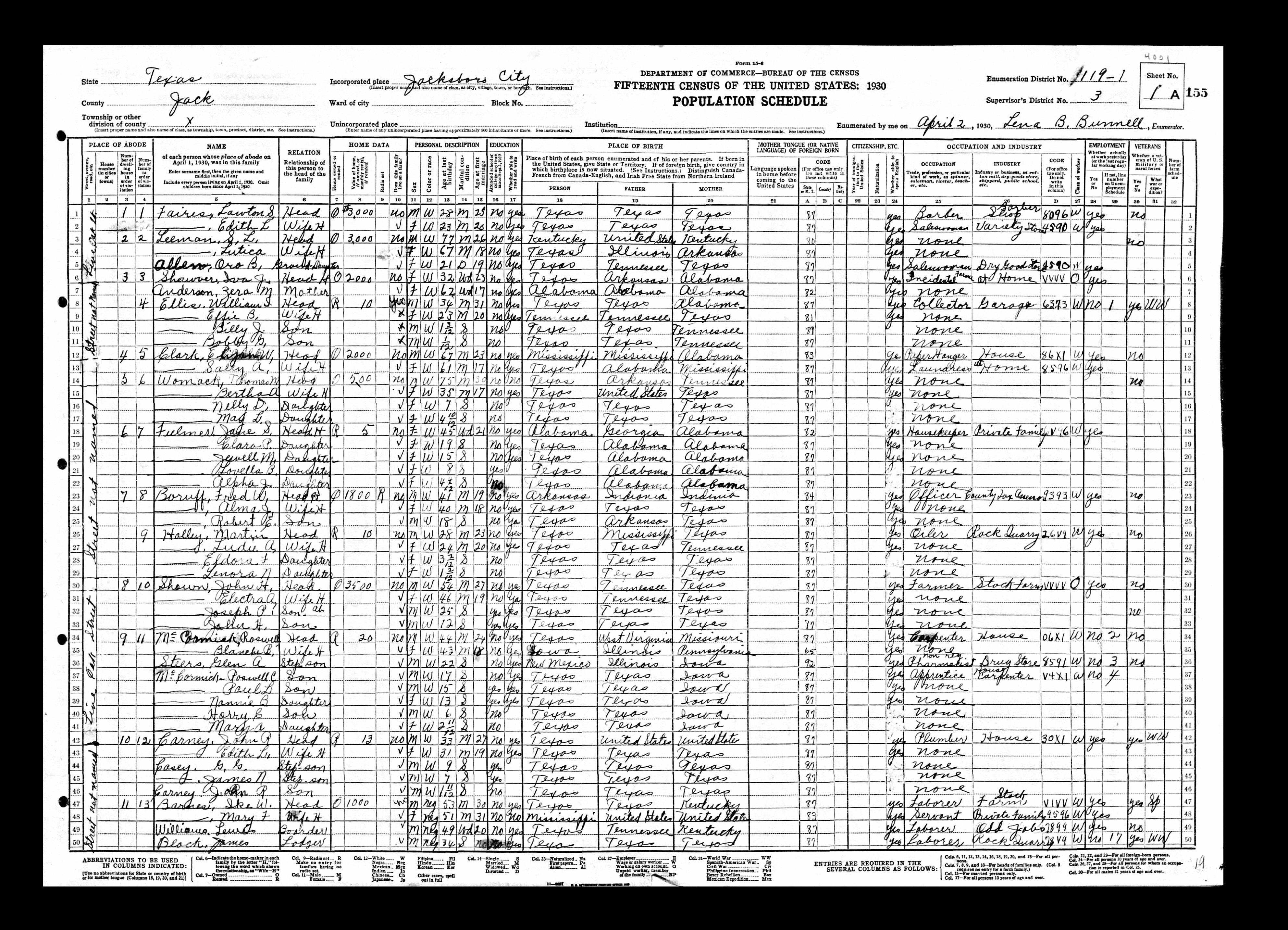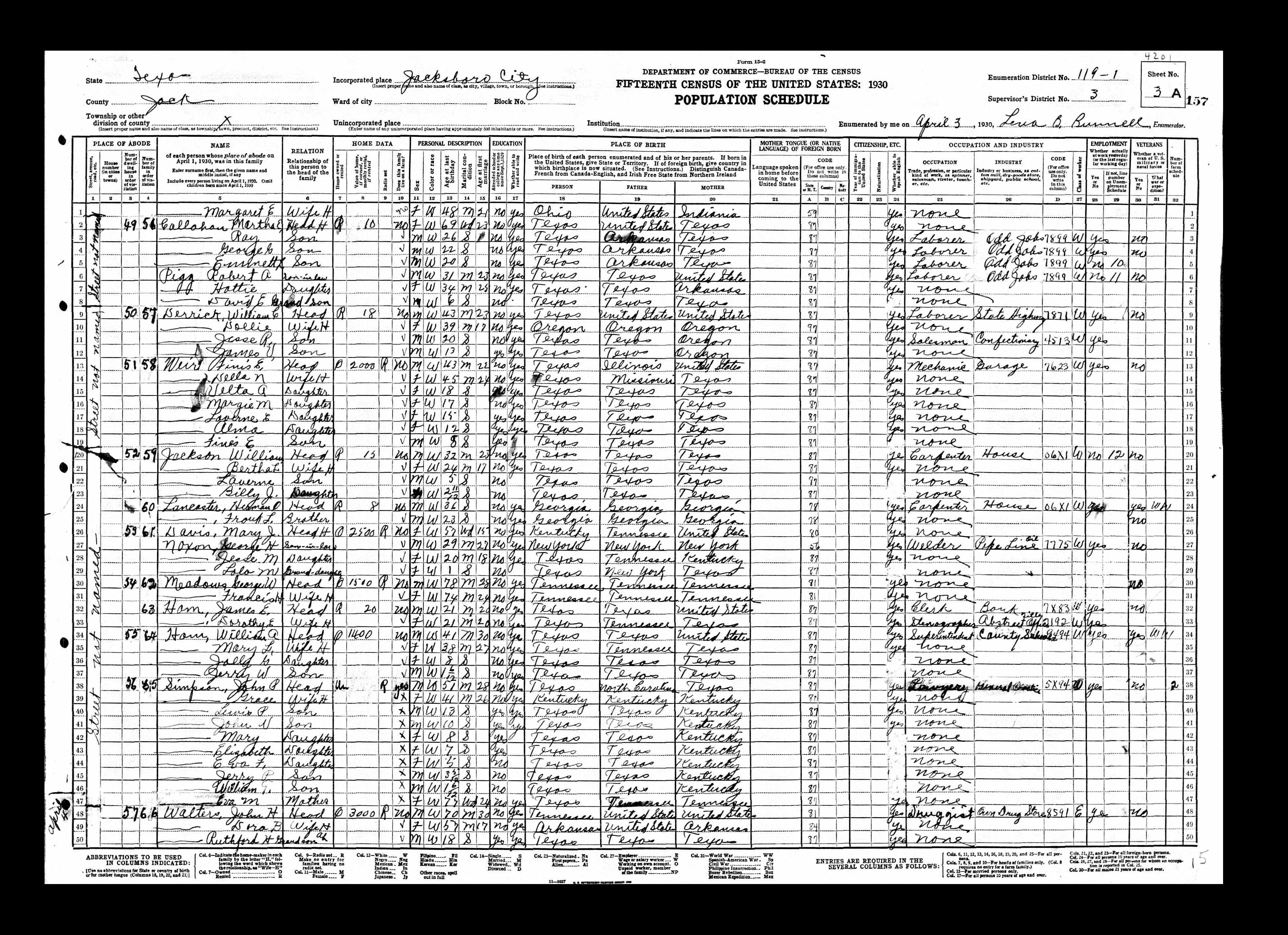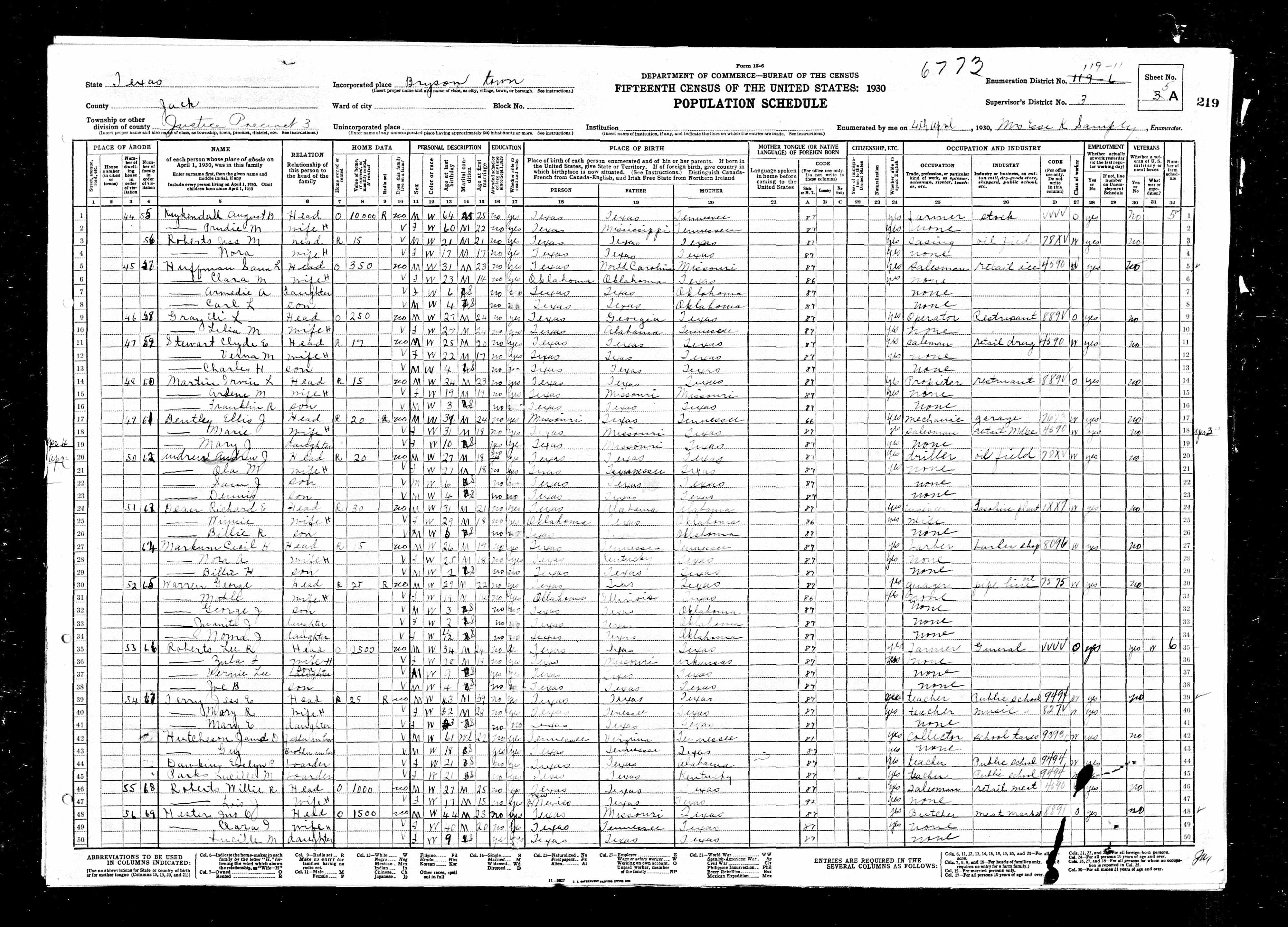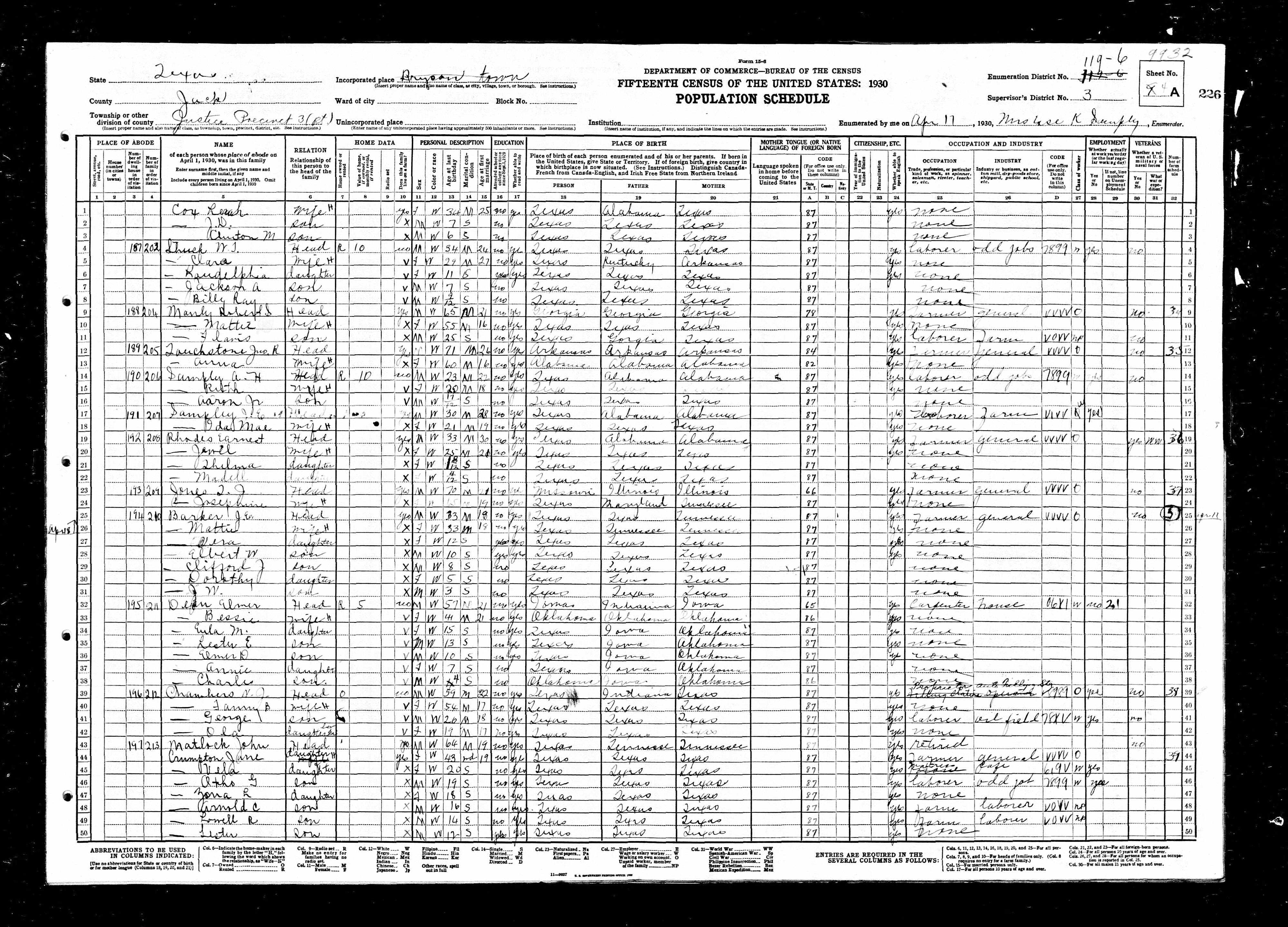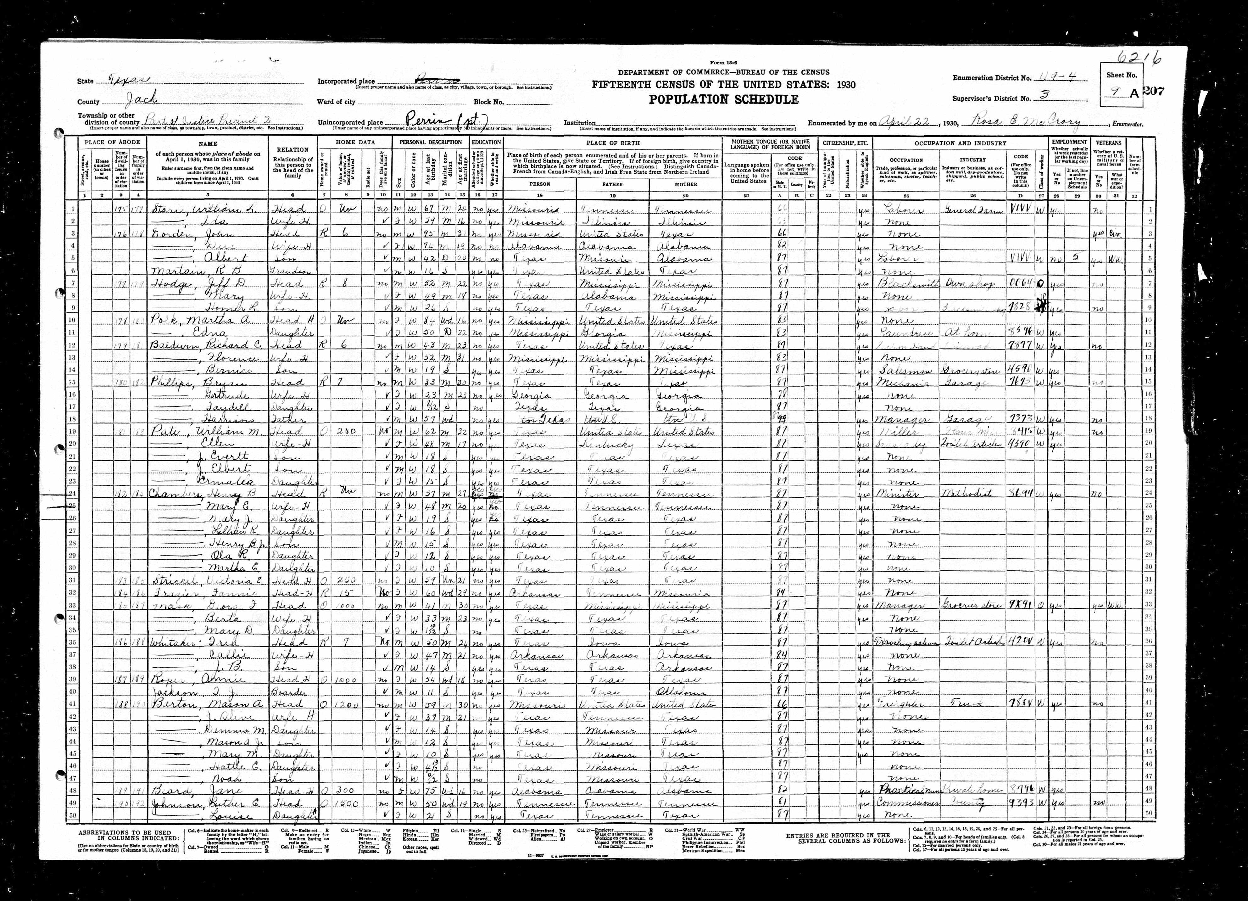 | Links to Large Images of Handwritten 1930 Census Pages | |||||||||||||||||||||