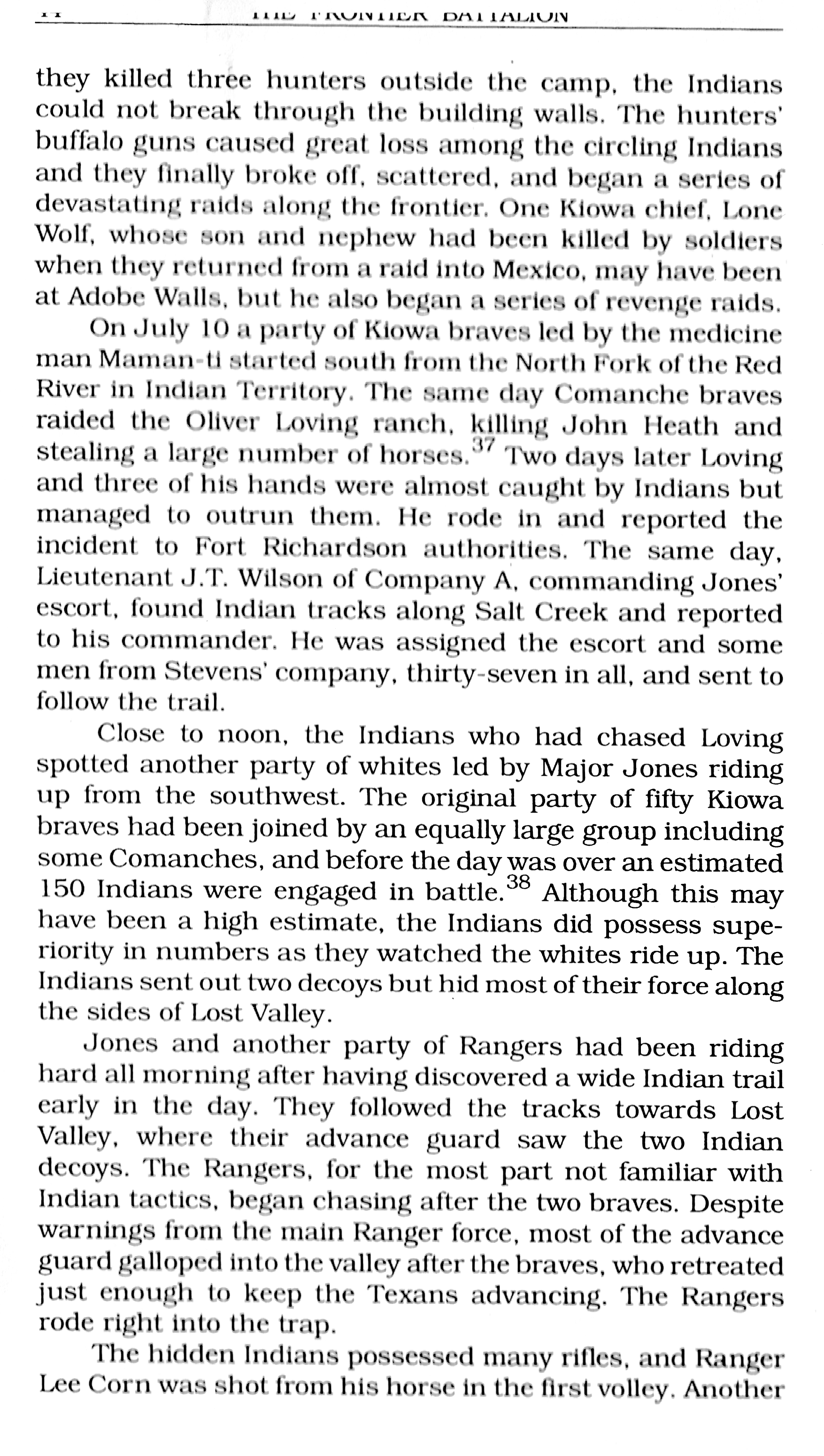 between Texas Rangers and Kiowa |